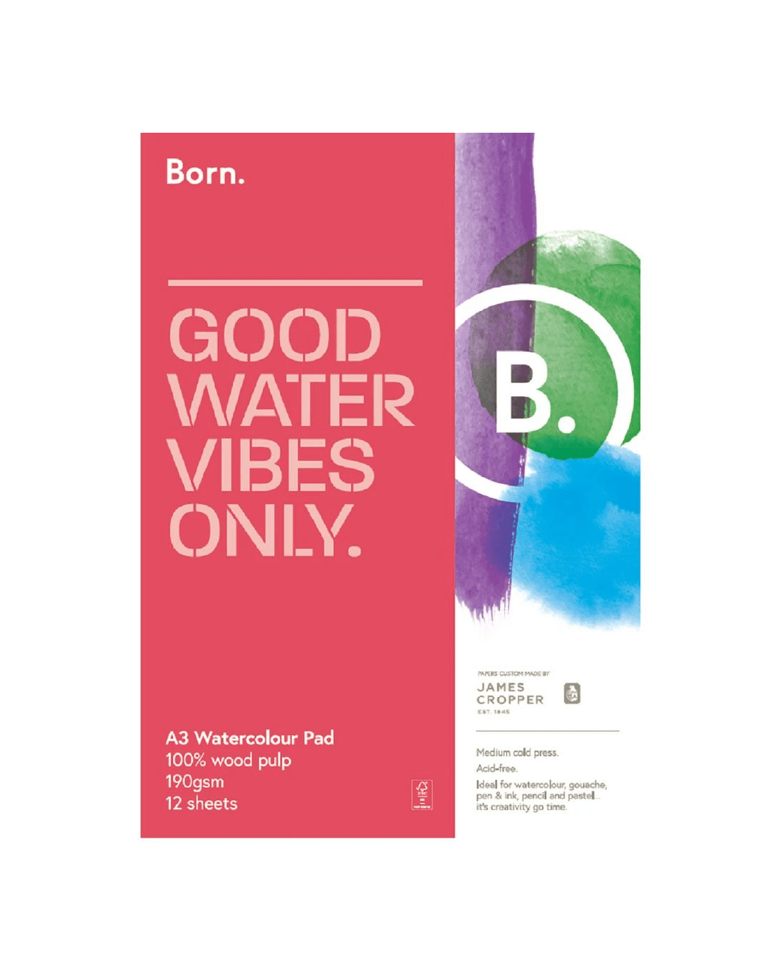 Born A3 Watercolour Pad 190gsm 12 Sheets