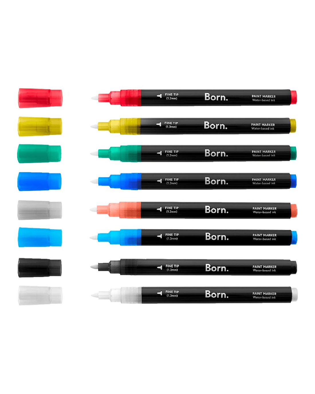 These Born Paint Markers are suited to a range of different applications thanks to their ability to write on stone, wood, glass, and paper. The 1.3 mm nib means you can make bold strokes when you draw and write.