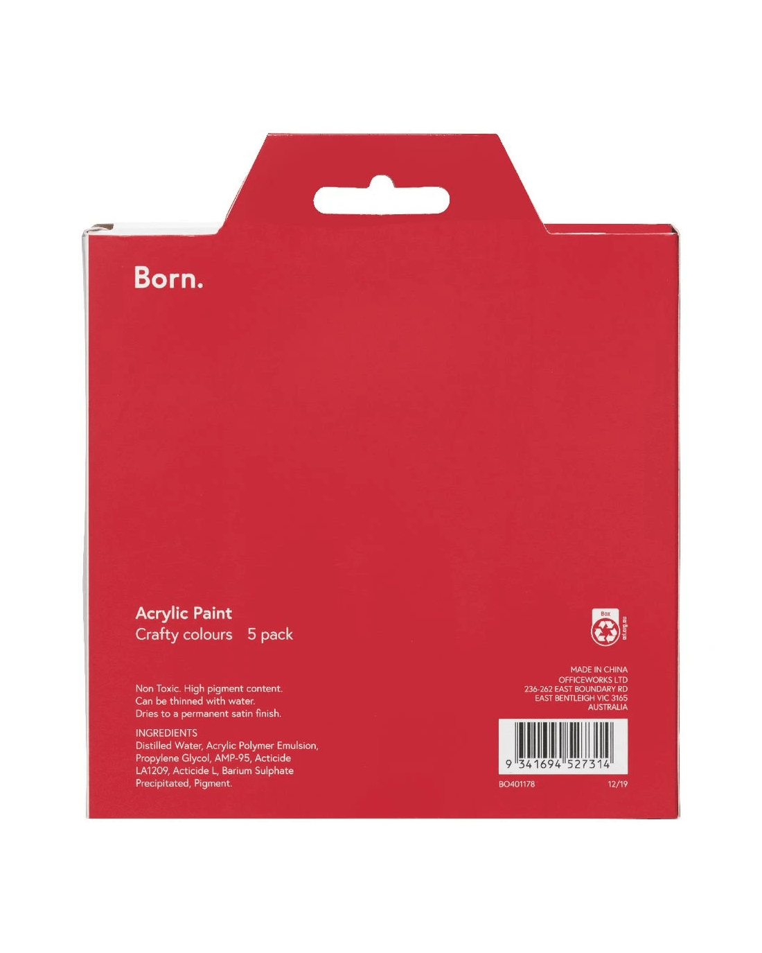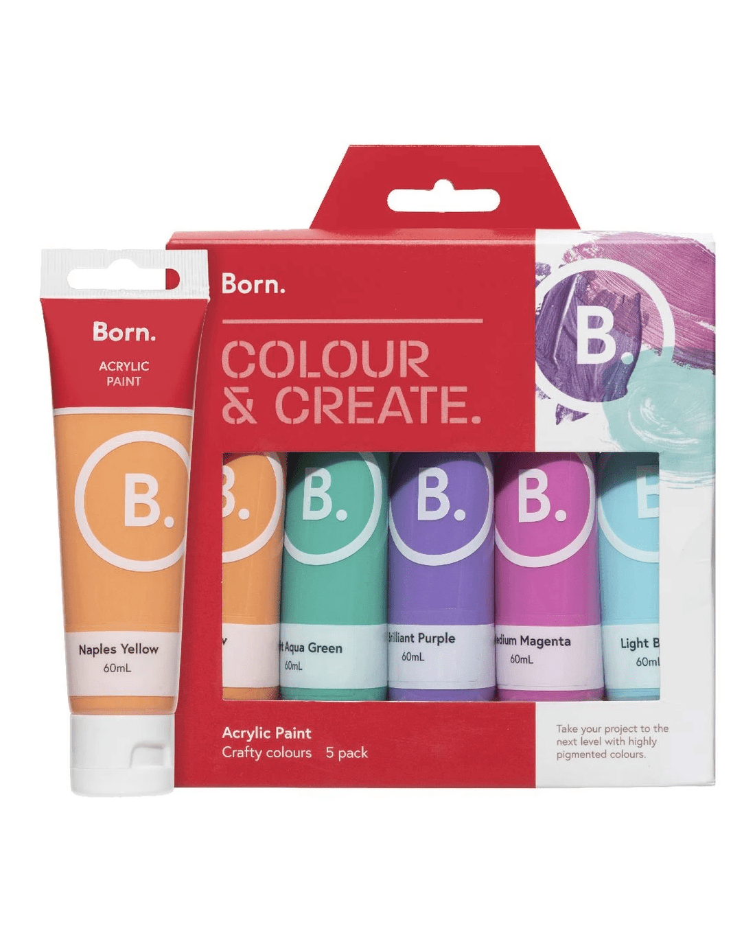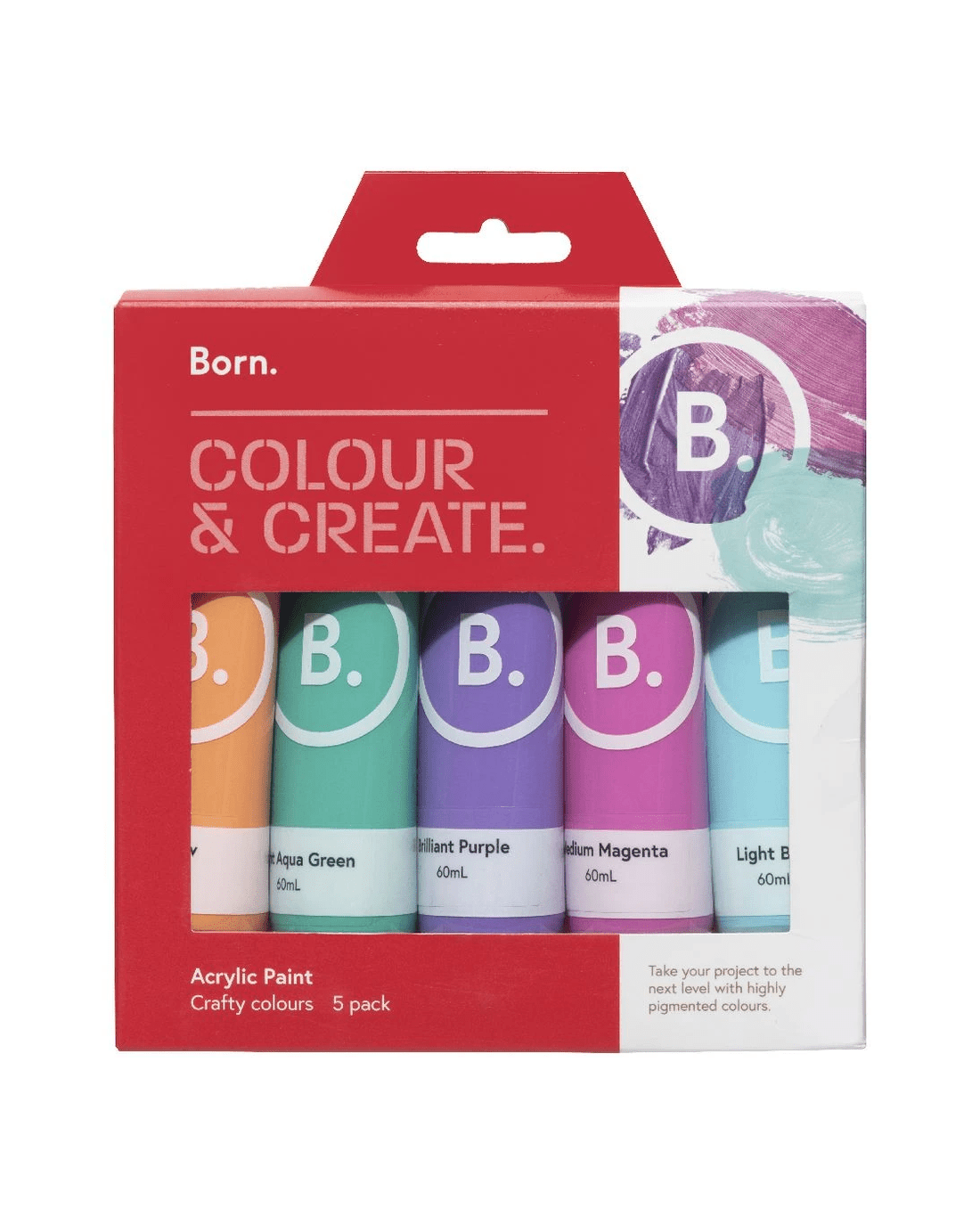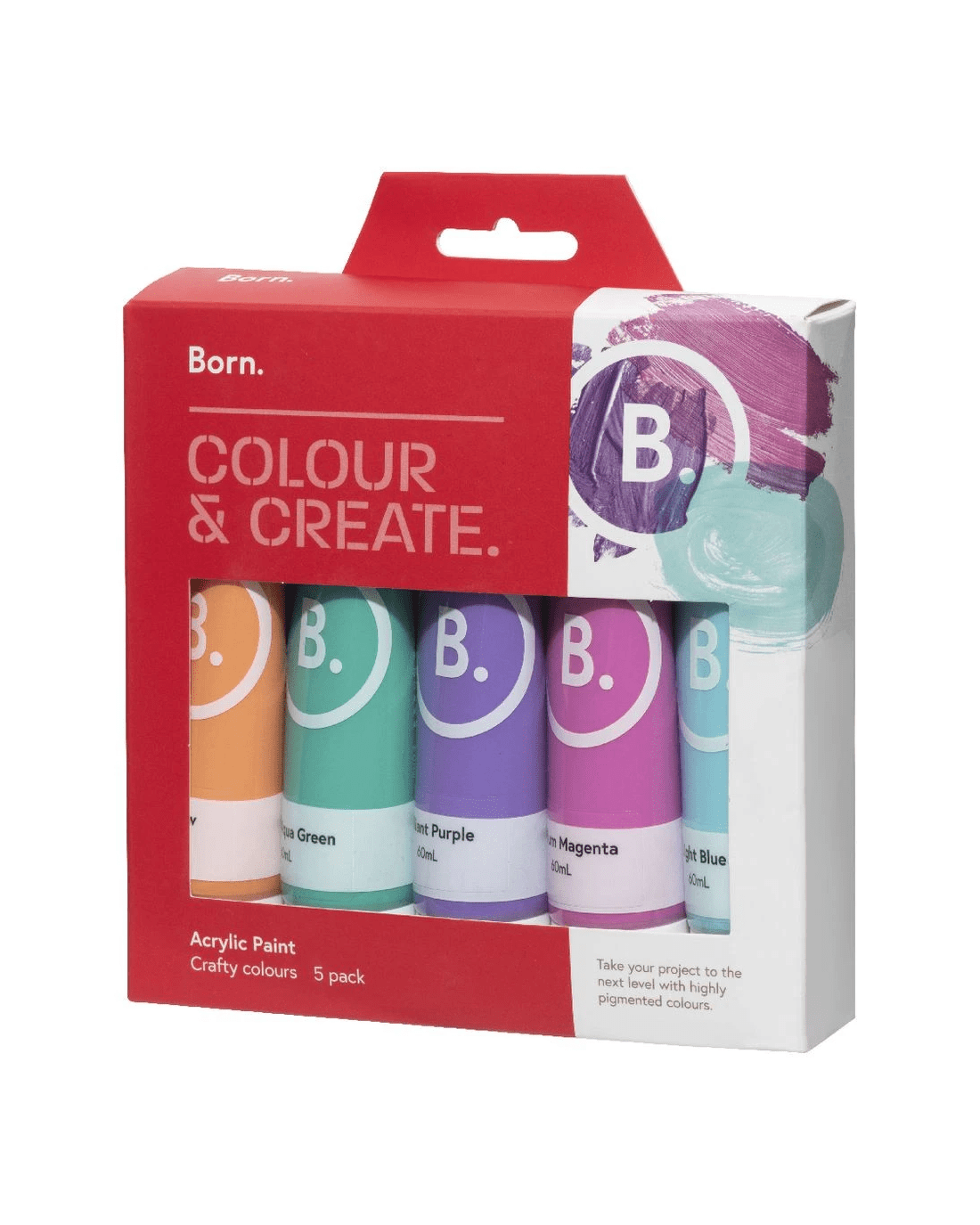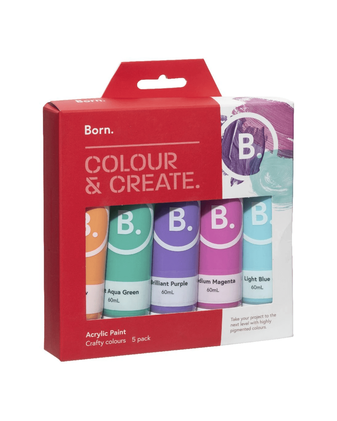 Sold by OfficeworksBorn Acrylic Paints 60mL 5 Pack Crafty Colours