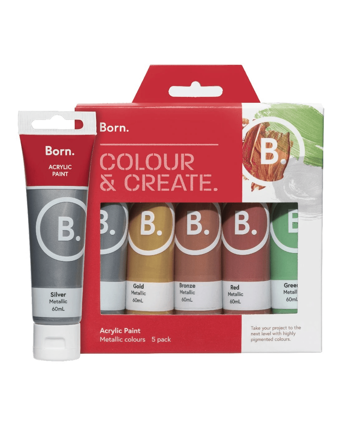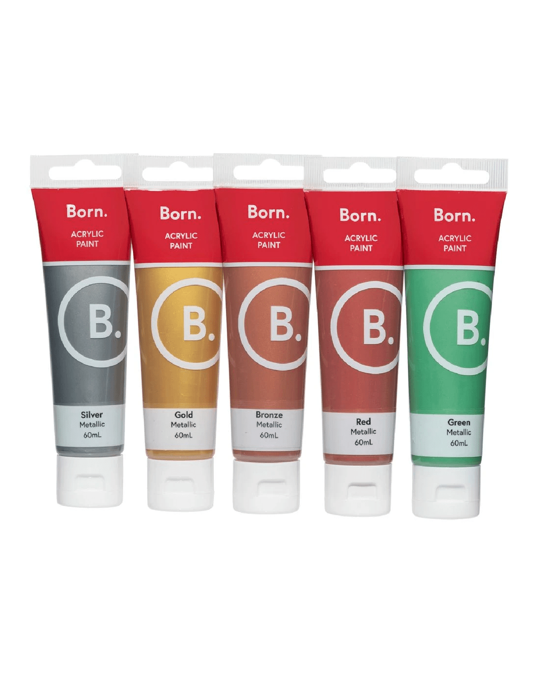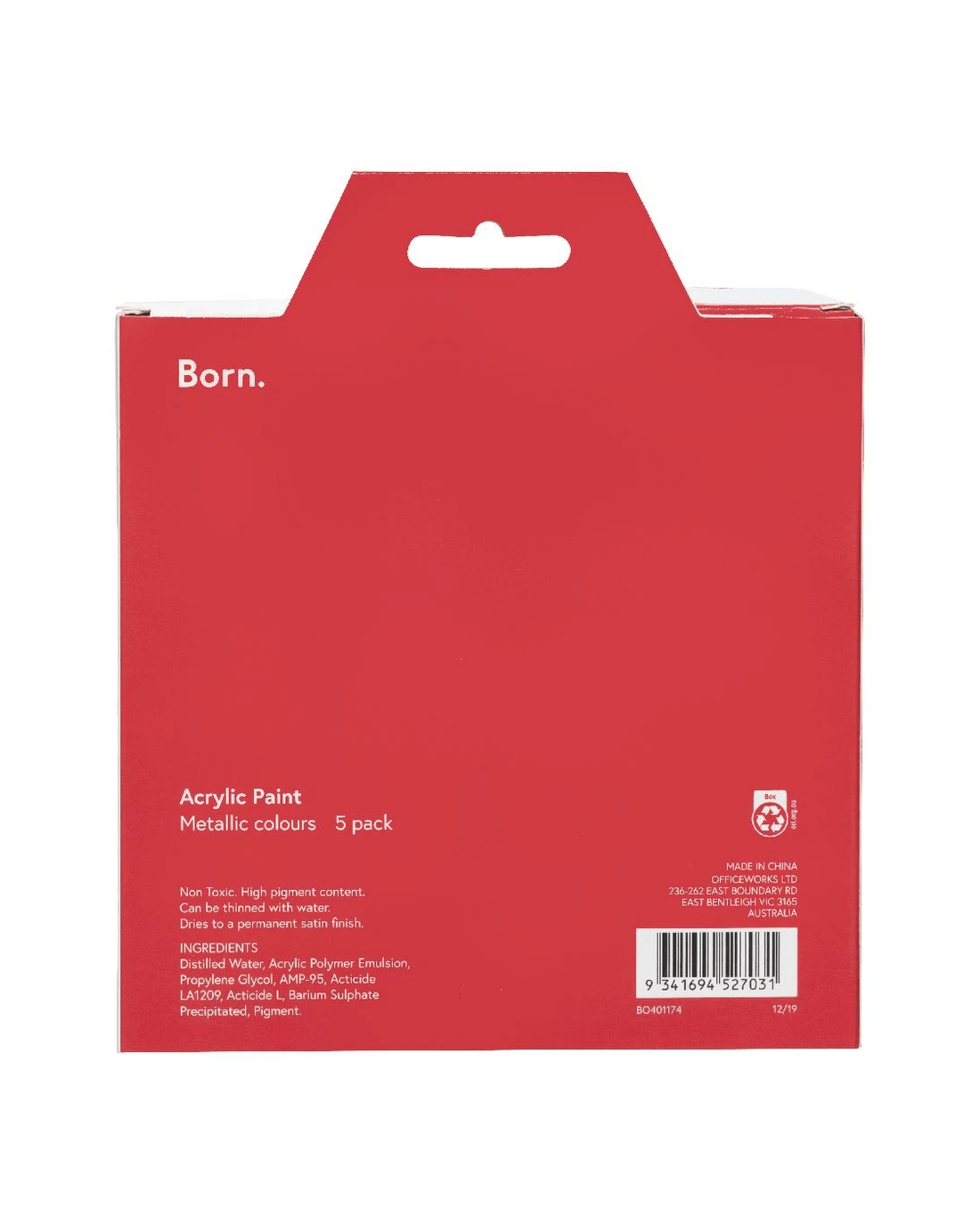 Sold by OfficeworksBorn Acrylic Paints 60mL 5 Pack Metallic Colours