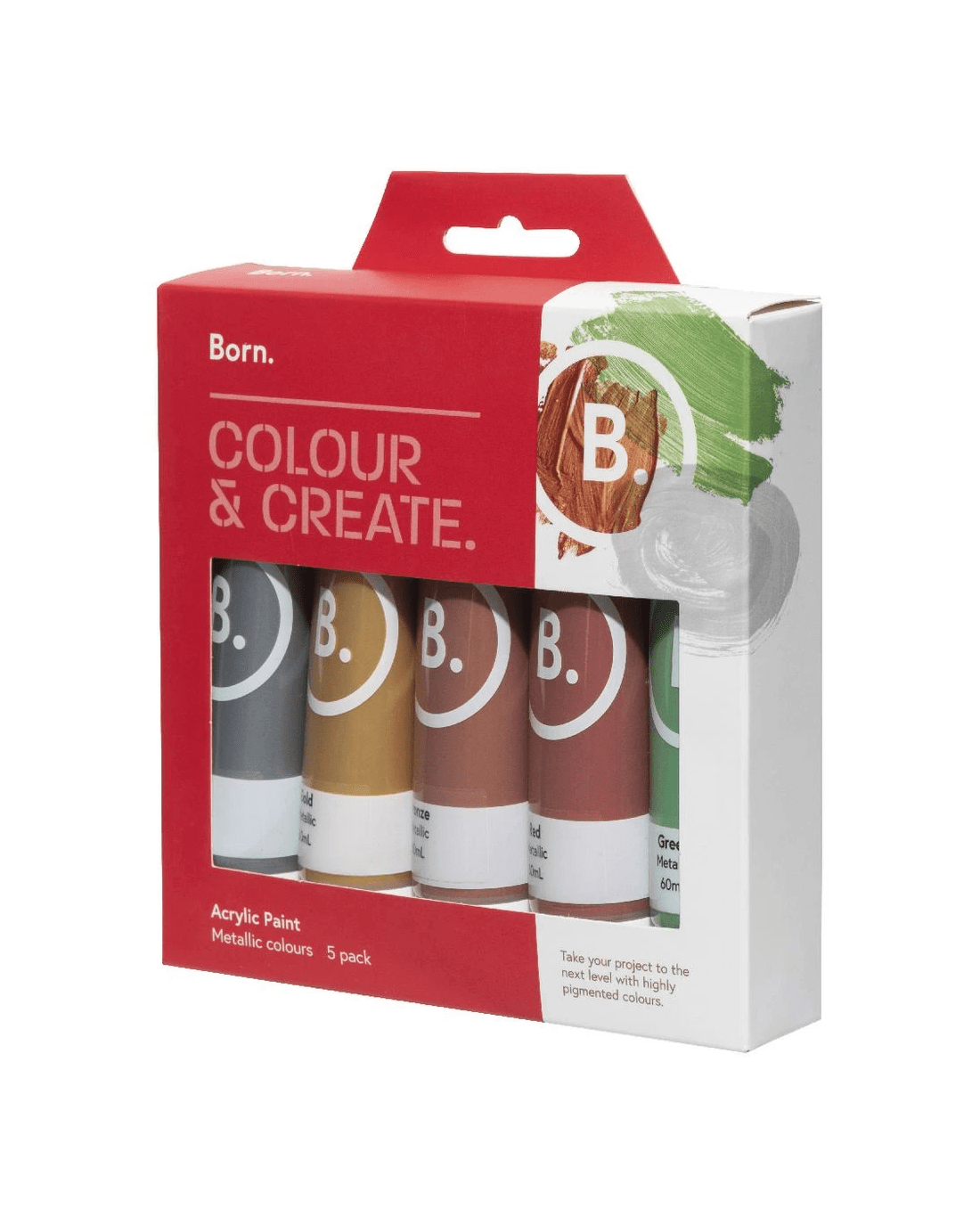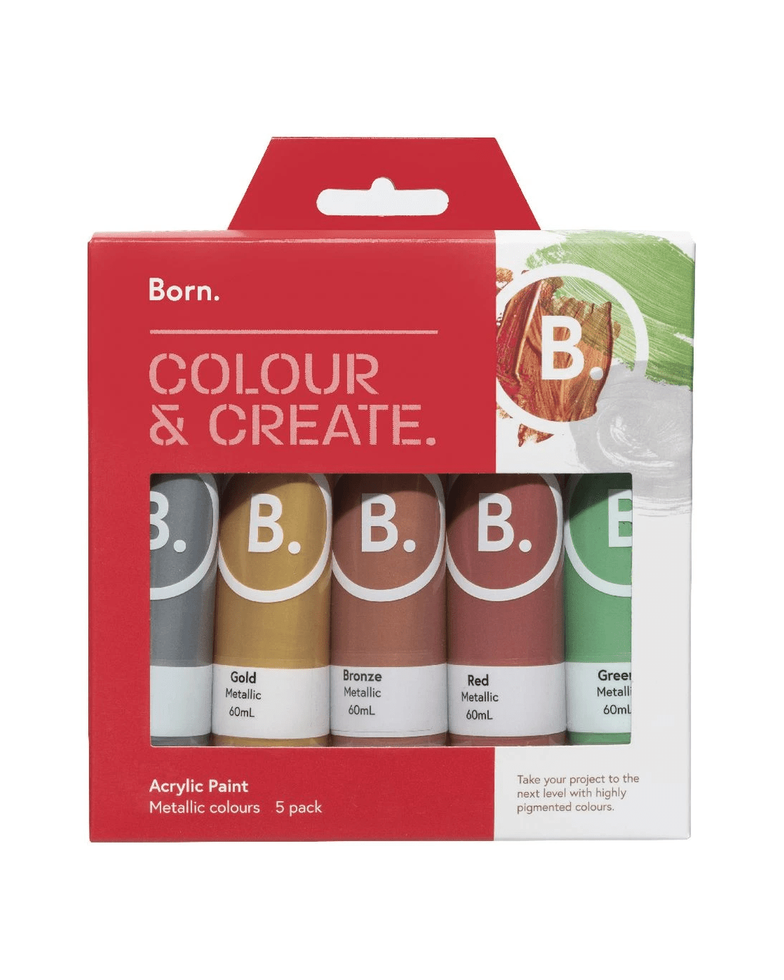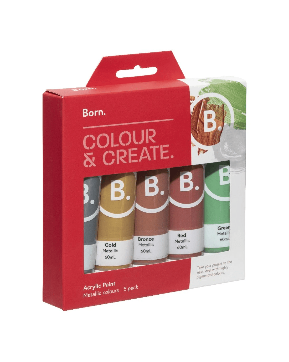 Sold by OfficeworksBorn Acrylic Paints 60mL 5 Pack Metallic Colours