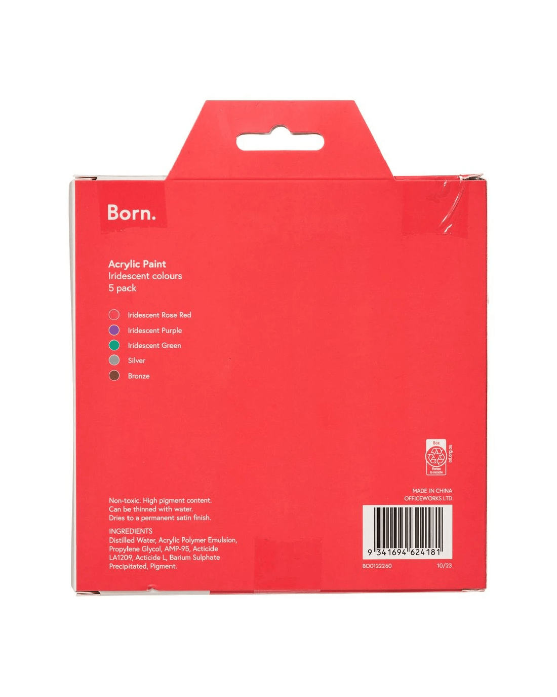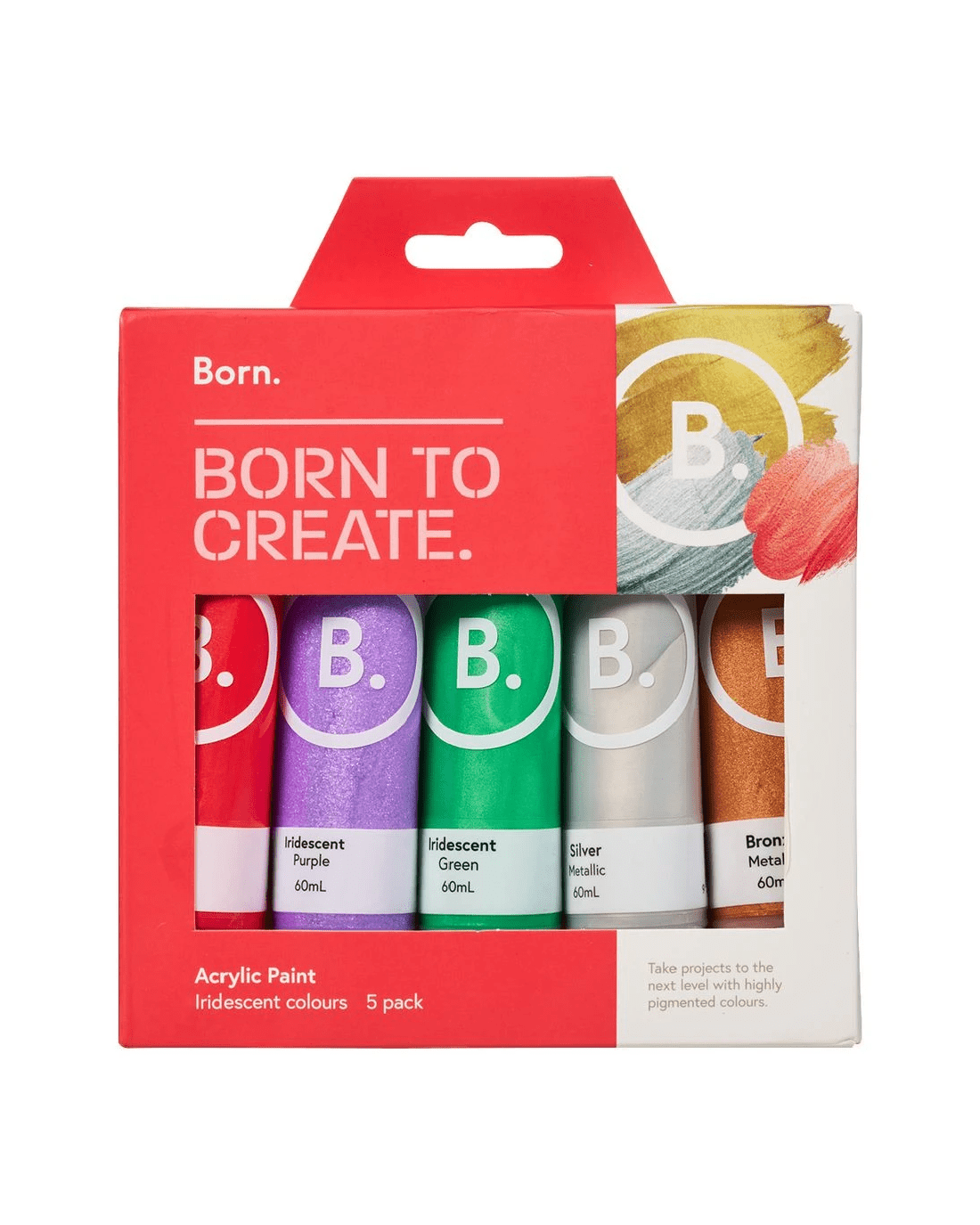 Sold by OfficeworksBorn Acrylic Paints 60mL Iridescent Colours 5Pk