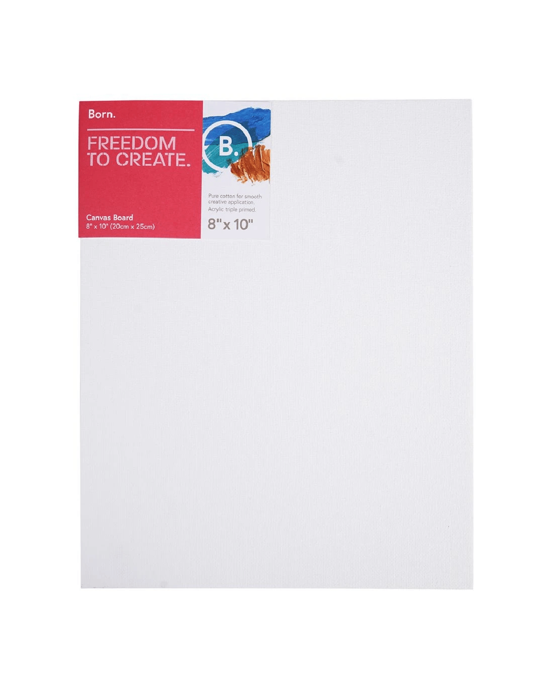 This Born Canvas Board is a great surface for a variety of painting techniques. This canvas is pre-coated and triple primed in quality acrylic gesso giving you a smooth and perfect base for painting. The pure cotton canvas board absorbs the paint evenly making your work look neat.