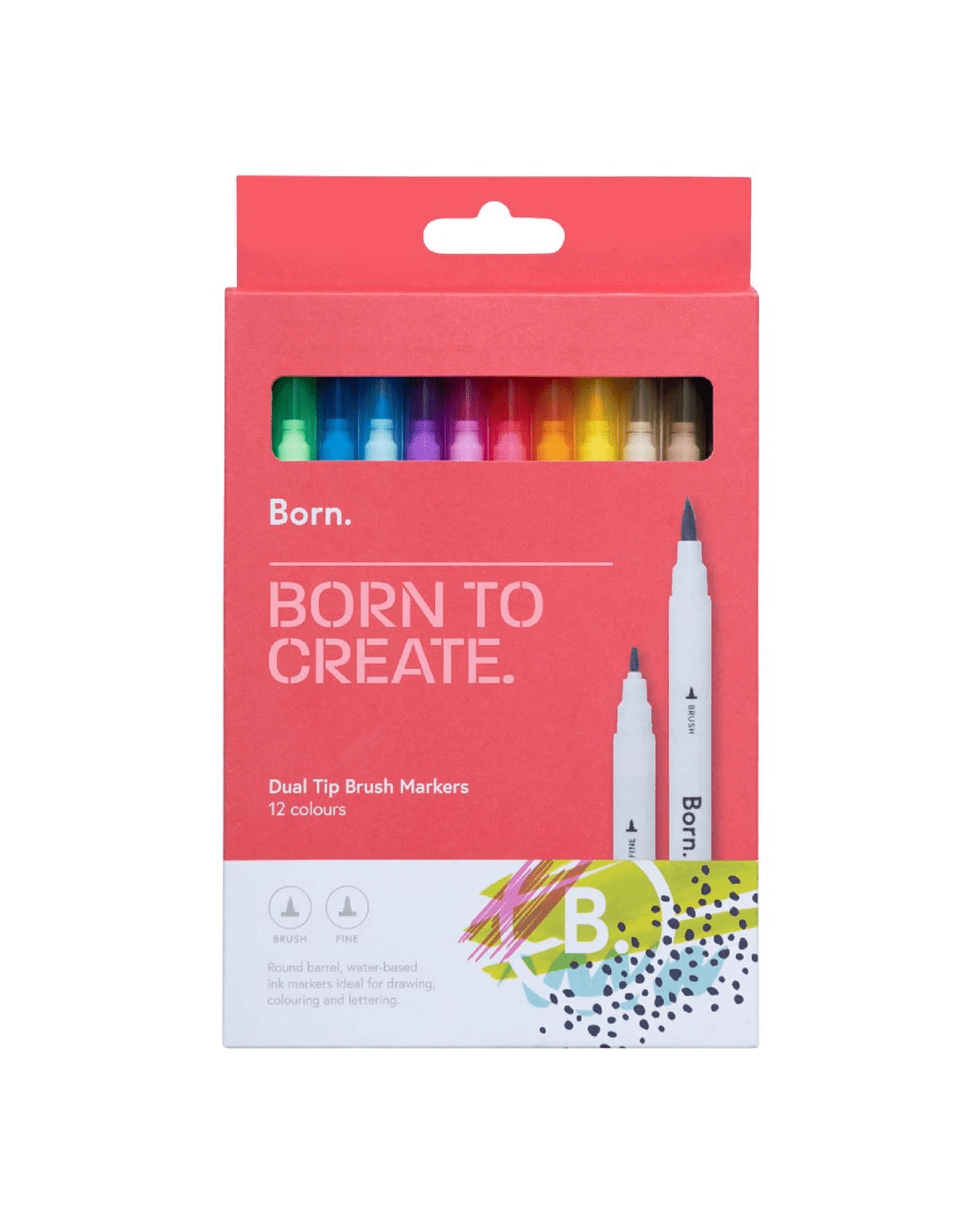 Sold by OfficeworksBorn Dual-Tip Brush Markers 12 Pack Assorted
