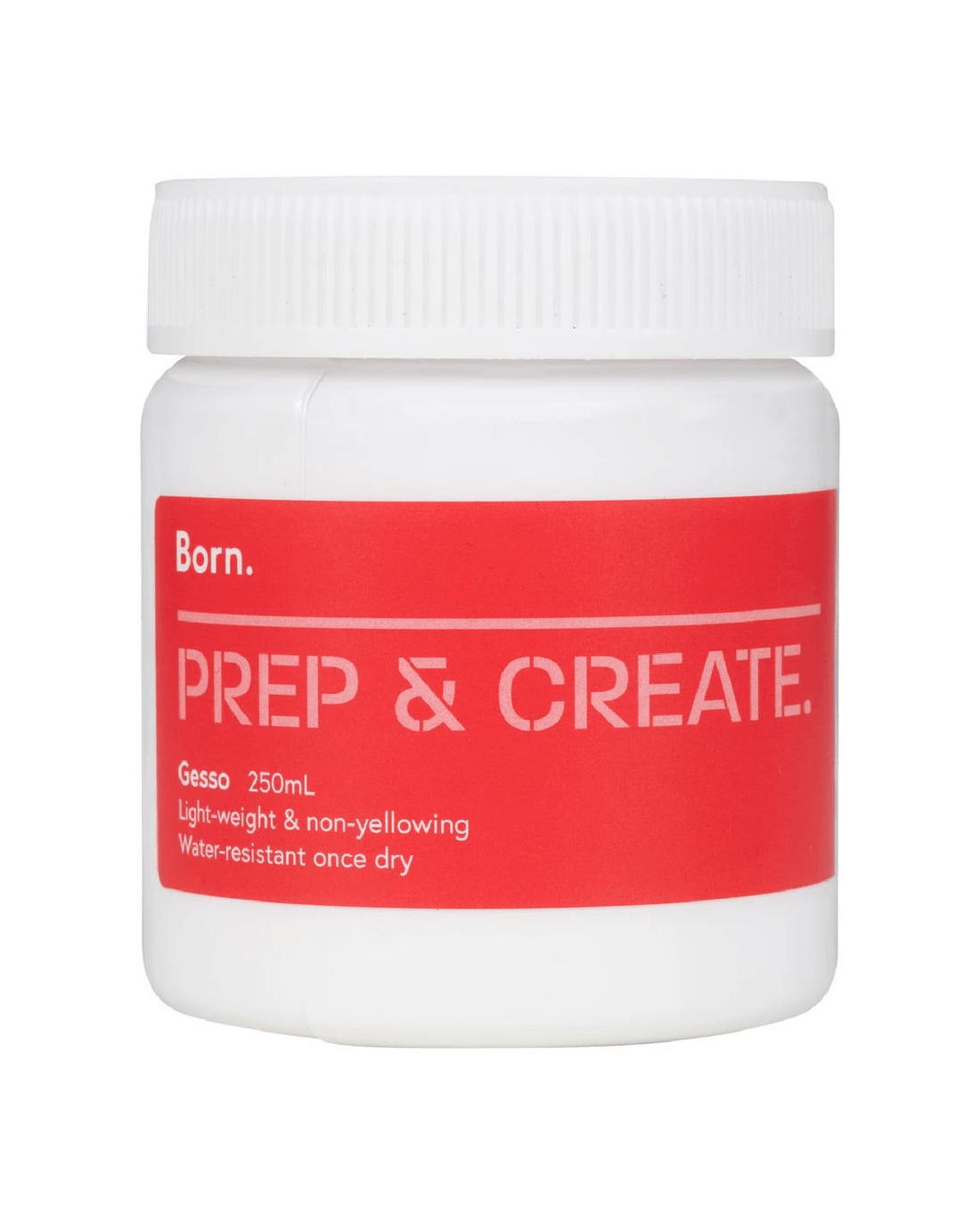 Born Gesso Medium allows you to prime surfaces such as canvas, board and paper for paints and other mediums. The gesso has a matt white finish that mixes seamelessly with coloured paints and boards.