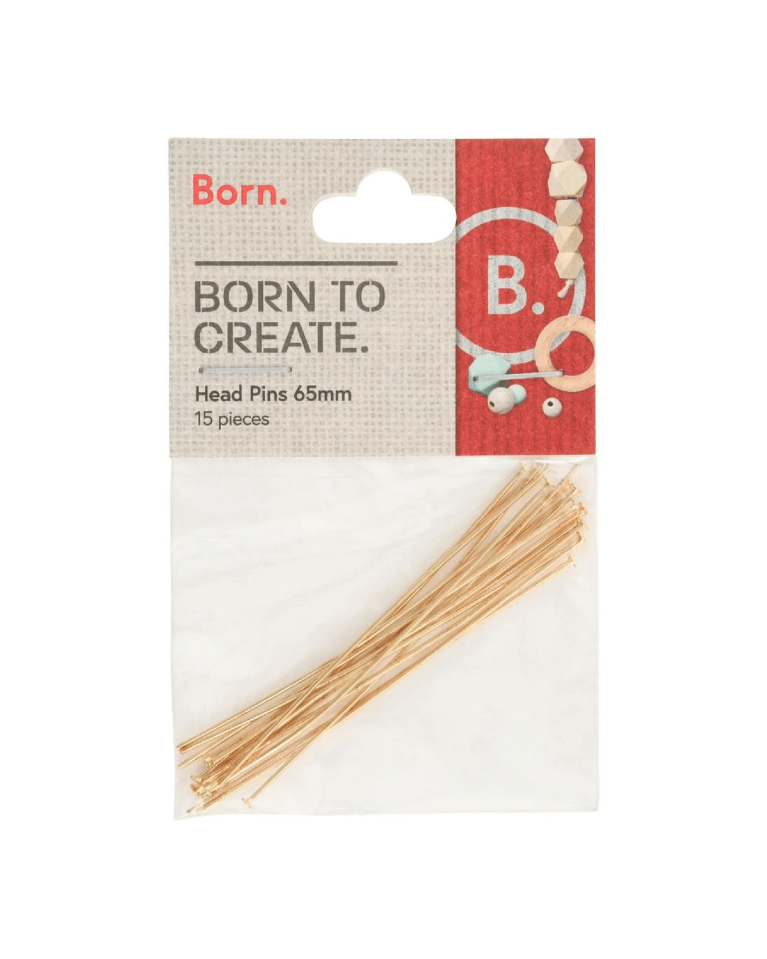 Use these Born Head Pins to join or suspend beads for everyday jewellery making. They're great for a creative afternoons; use them to make small charms for bracelets, necklaces, earrings or keychains. Each pin is constructed from 99.2% iron for durability and is coated in a galvanised gold shine.