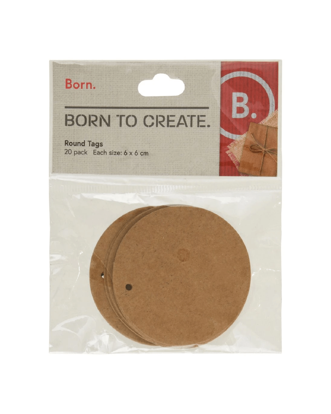 Born Kraft Tags Round 20 Pack
