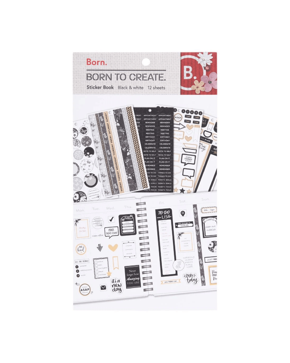 Born Large Sticker Book 12 Sheets Black and White