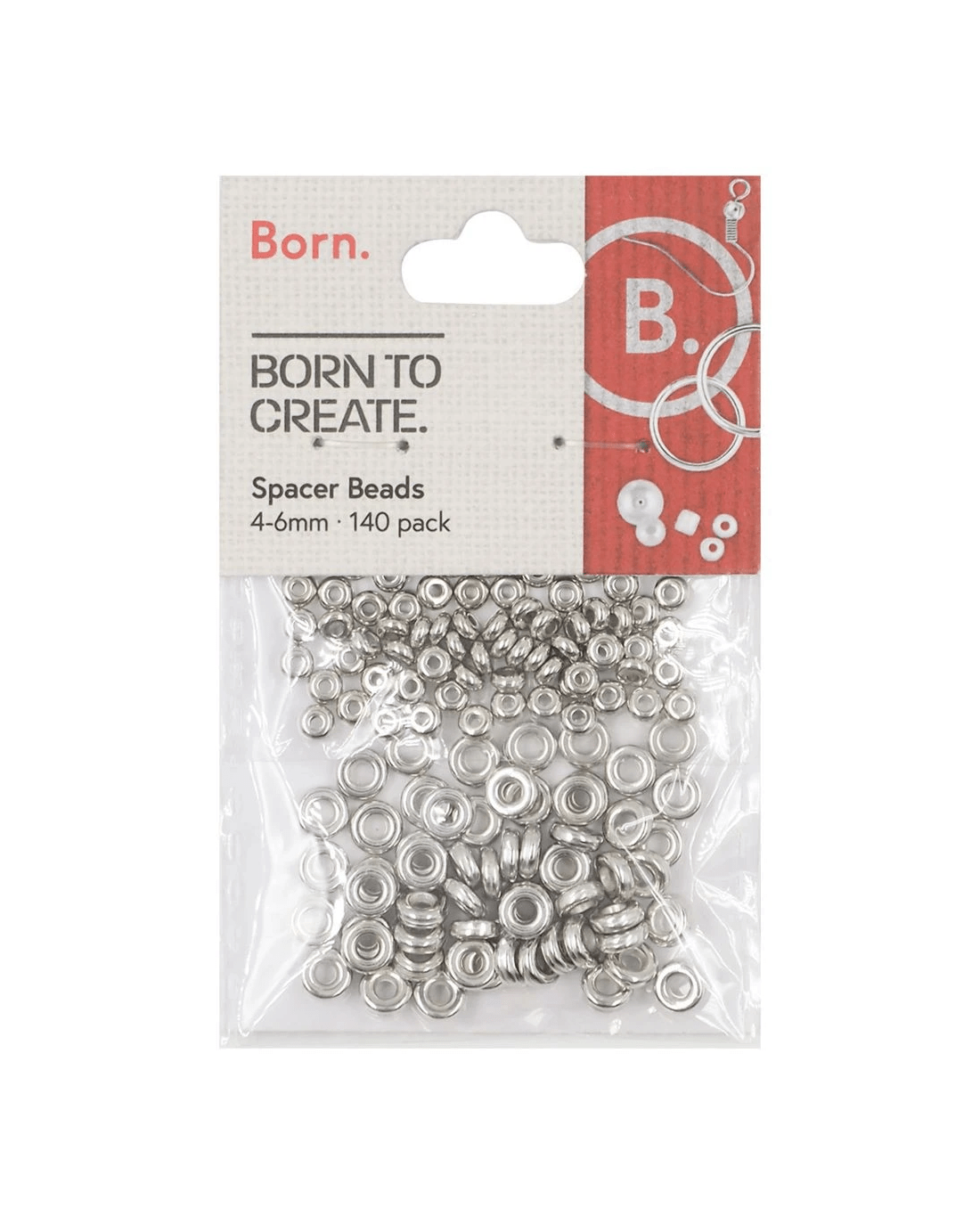 Sold by OfficeworksBorn Metal Spacer Beads Silver 4-6mm 140 Pack
