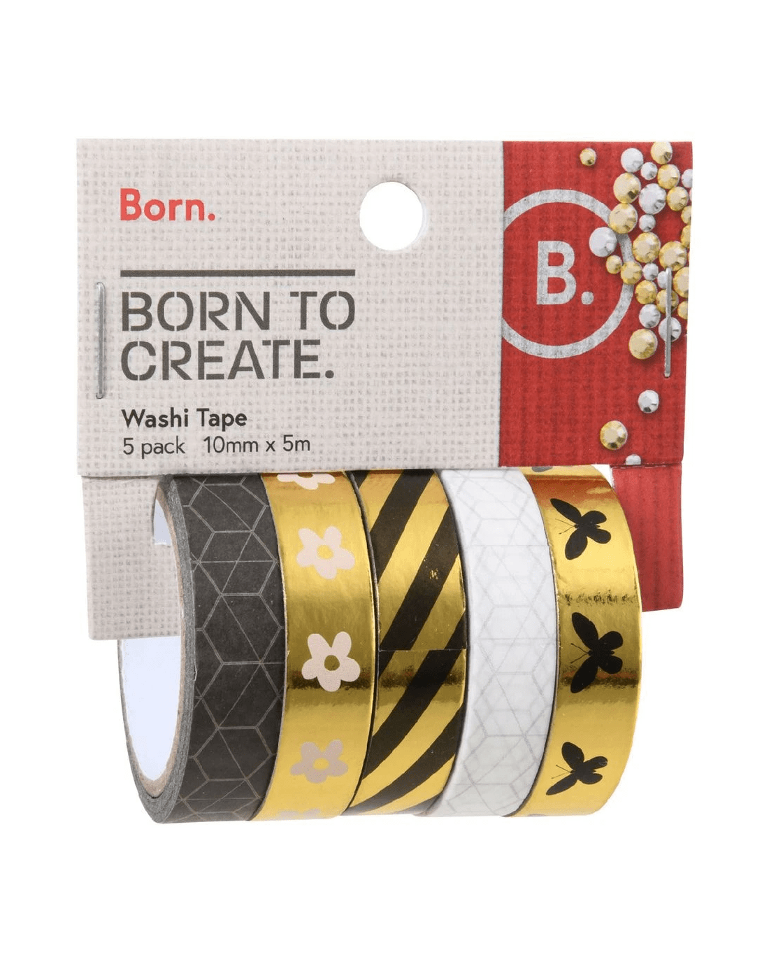 Born Micro Washi Tape 10mm x 5m Assorted 5 Pack