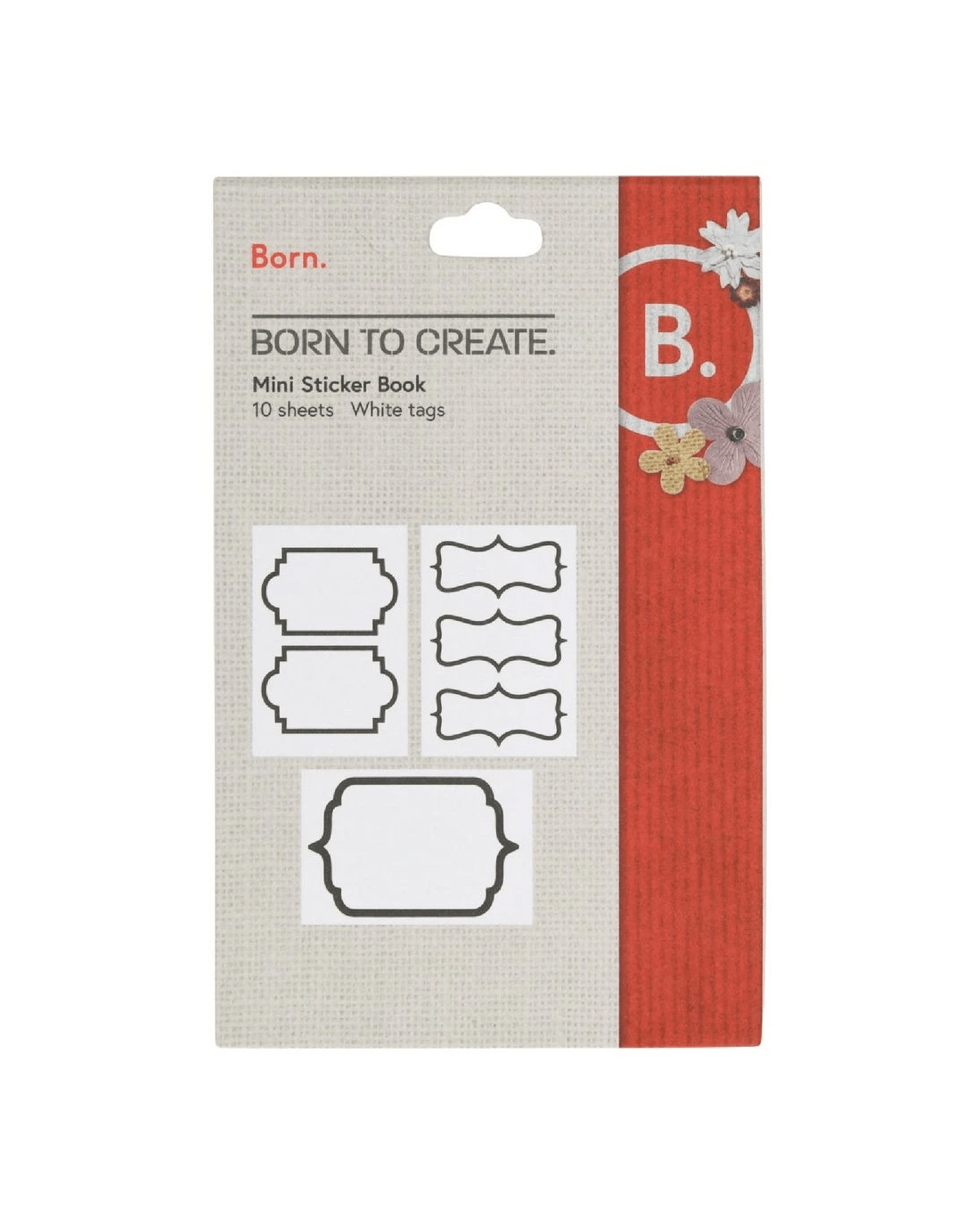 These Born Mini Stickers are ideal for decorating and tagging jars, gifts, exercise books, and more. There are a total of 10 tag stickers in this book that you can use to label, address or scrapbook with.
