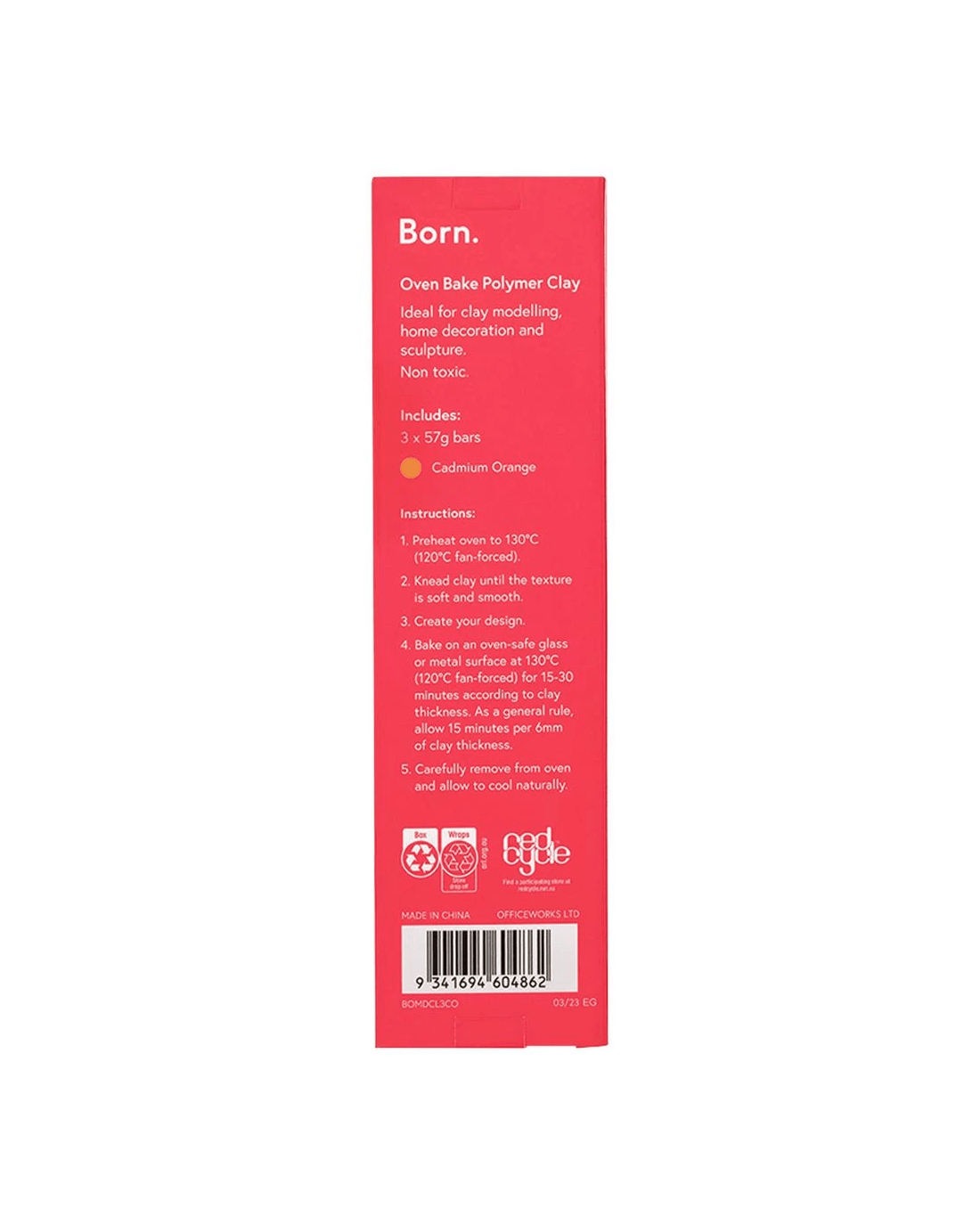 Born Oven Bake Polymer Clay Cadmium Orange 3 Pack