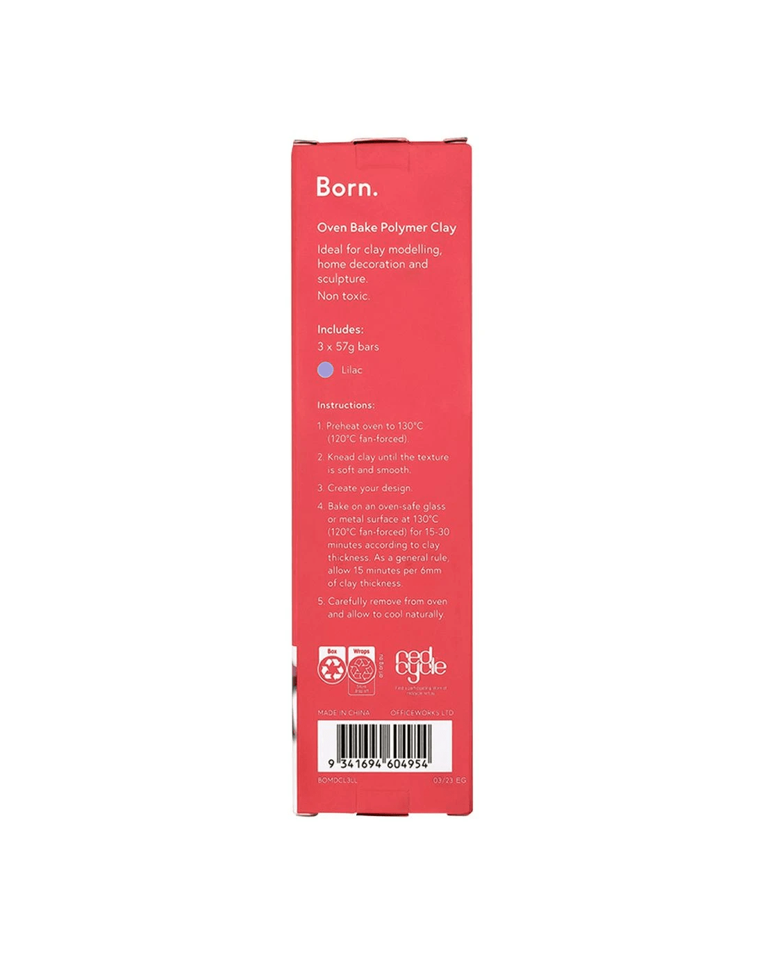 Born Oven Bake Polymer Clay Lilac 3 Pack