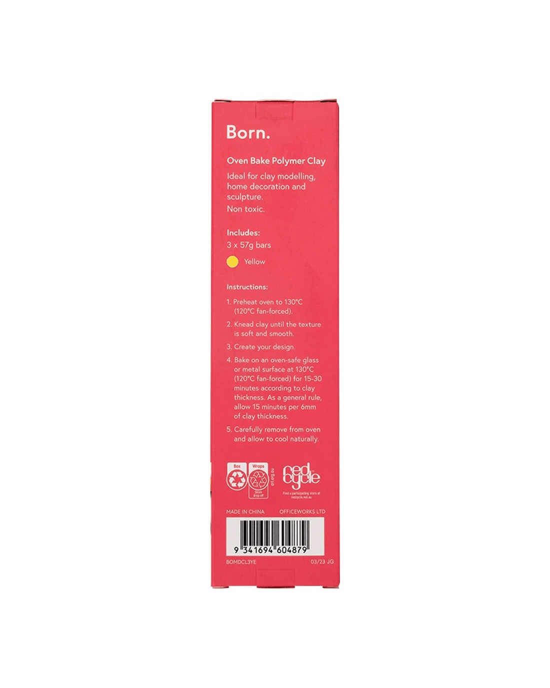 Born Oven Bake Polymer Clay Yellow 3 Pack