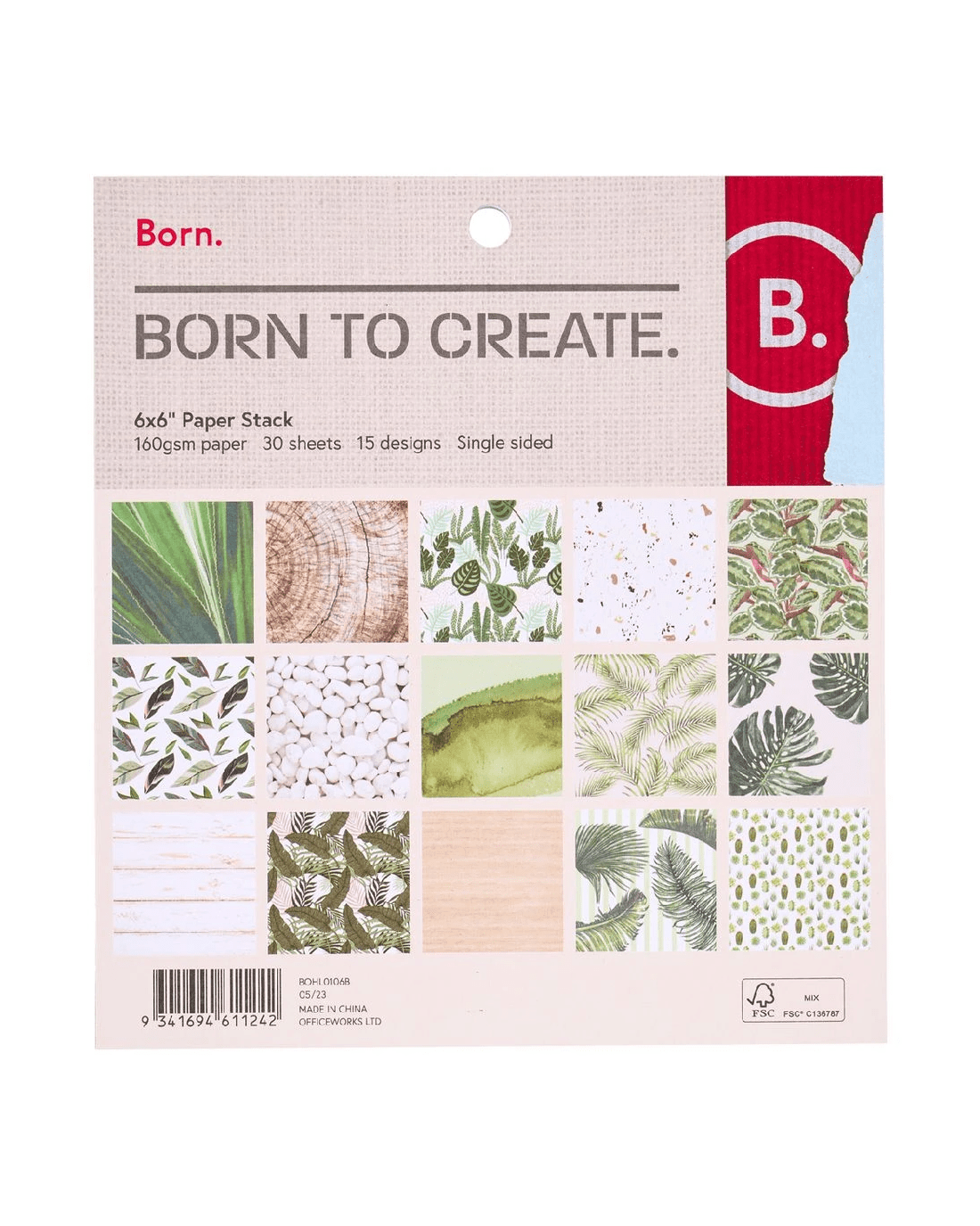 Born Paper Stack 15 x 15cm Botanical 30 Sheets