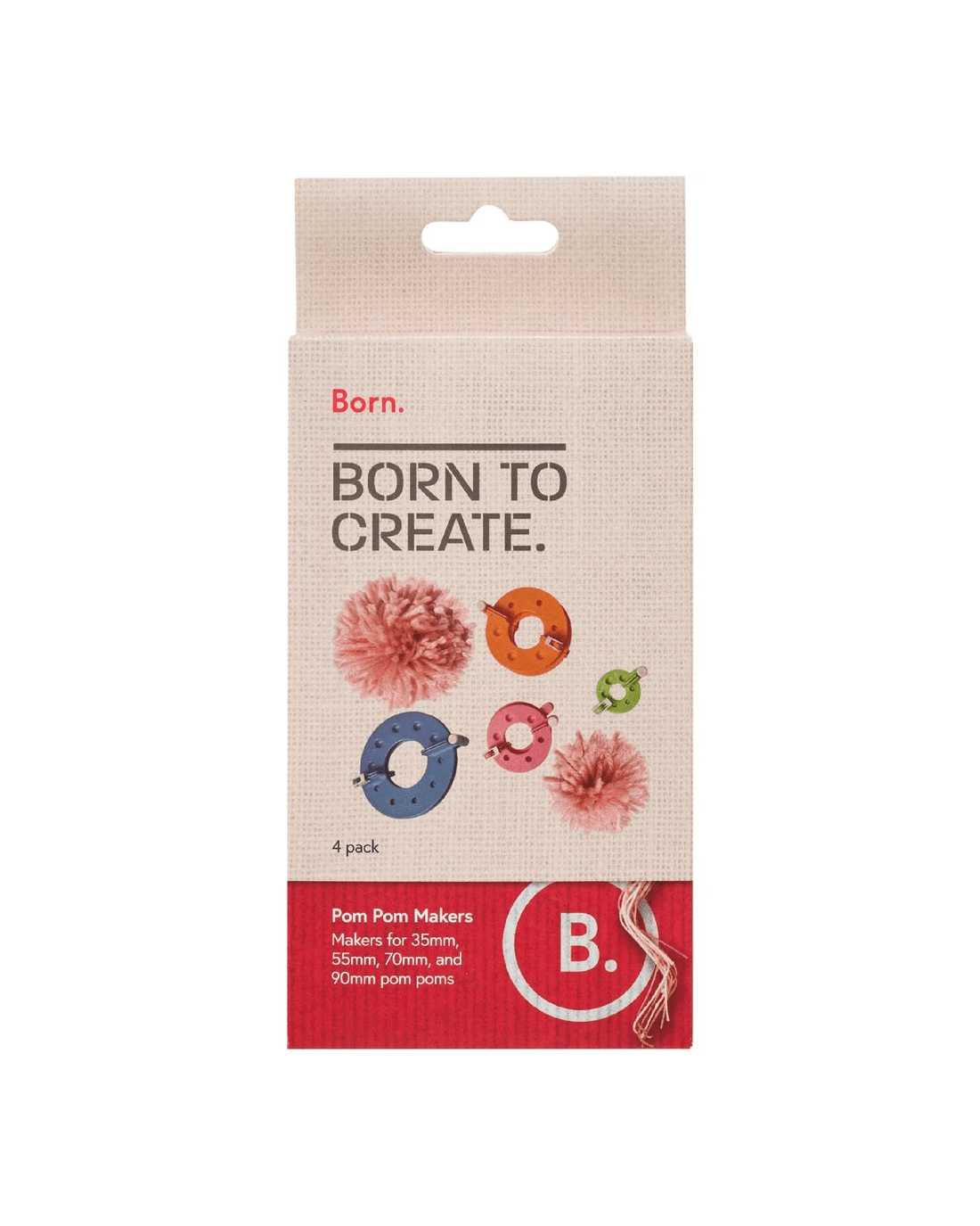 Enjoy crafting countless pom poms with this pack of 4 Born Pom Pom Makers. This pack contains 4 makers for 35 mm, 55 mm, 70 mm, and 90 mm pom poms. Plus, it's been designed for easy use, simply wind your yarn in two separate parts to achieve stunning results effortlessly.