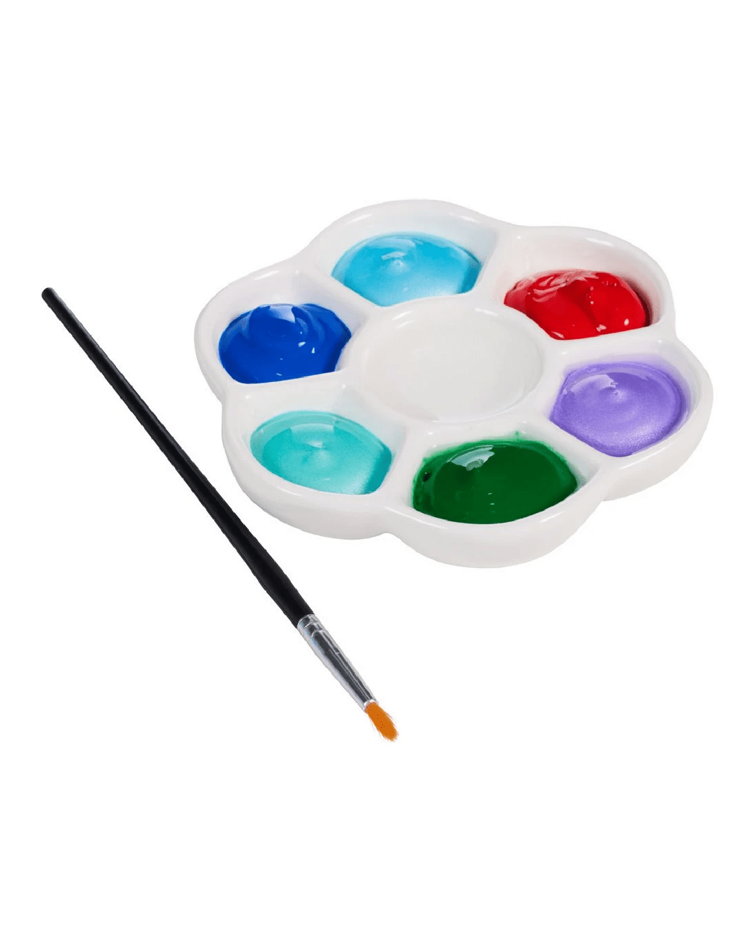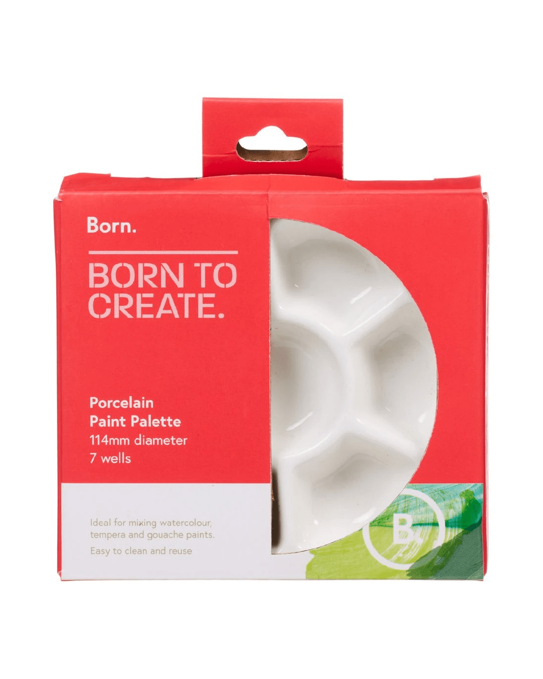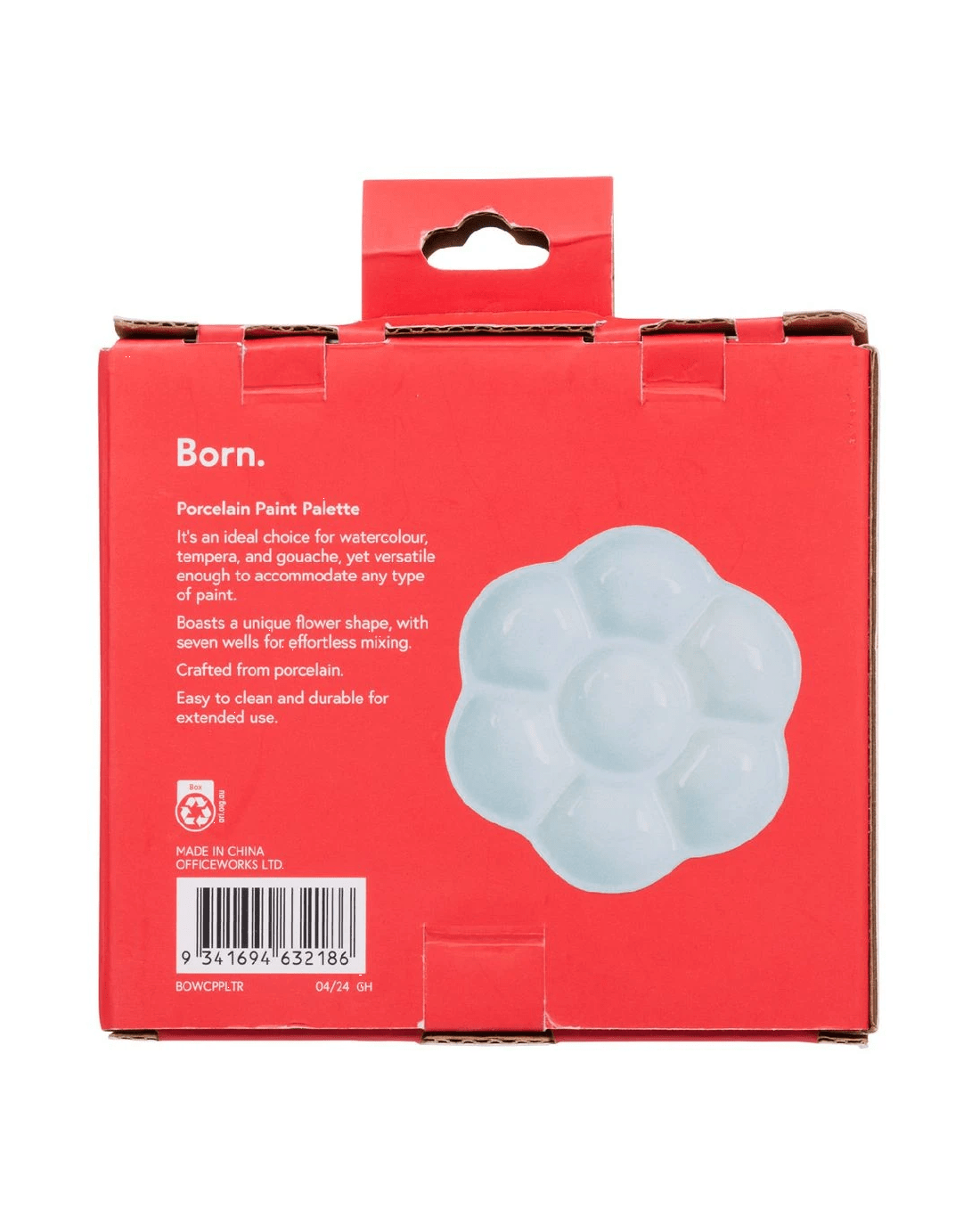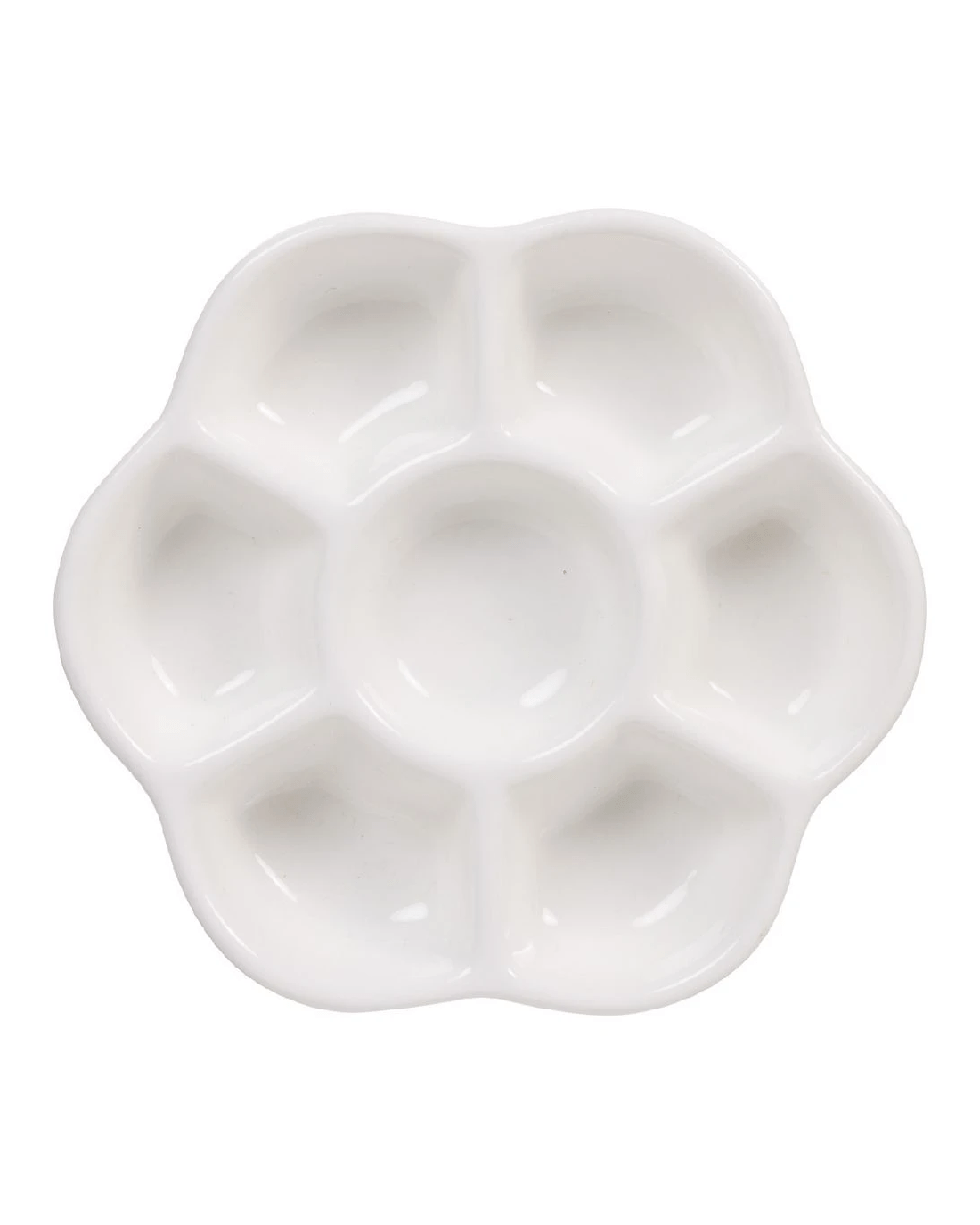 This Born Porcelain Paint Palette is an ideal choice for watercolour, tempera and gouache, yet versatile enough to accommodate any type of paint. It boasts a unique flower shape with 7 wells for effortless mixing. It's crafted from porcelain, easy to clean and durable for extended use.