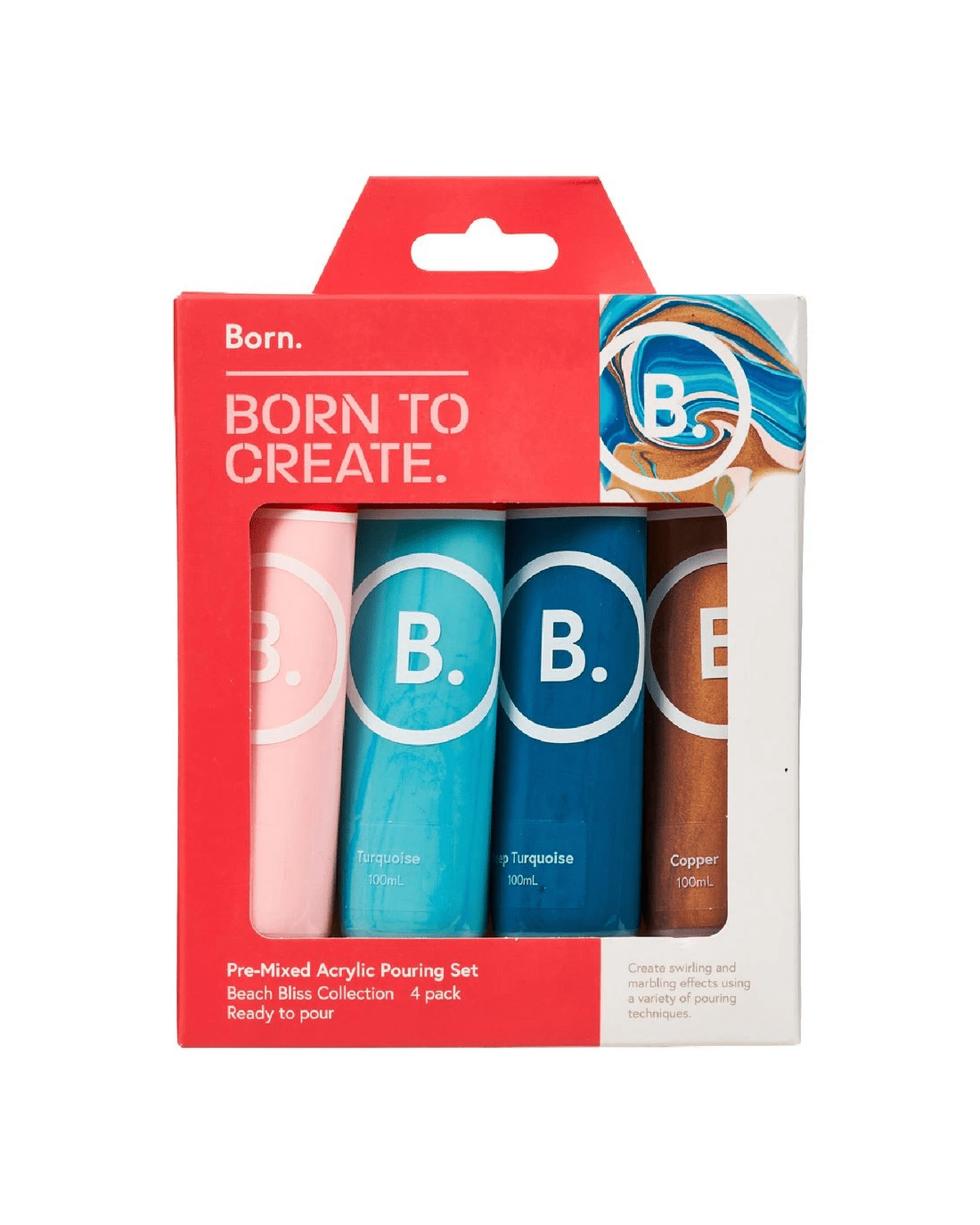 Sold by OfficeworksBorn Pre-Mixed Acrylic Pouring Paint Set Beach Bliss 4 Pack