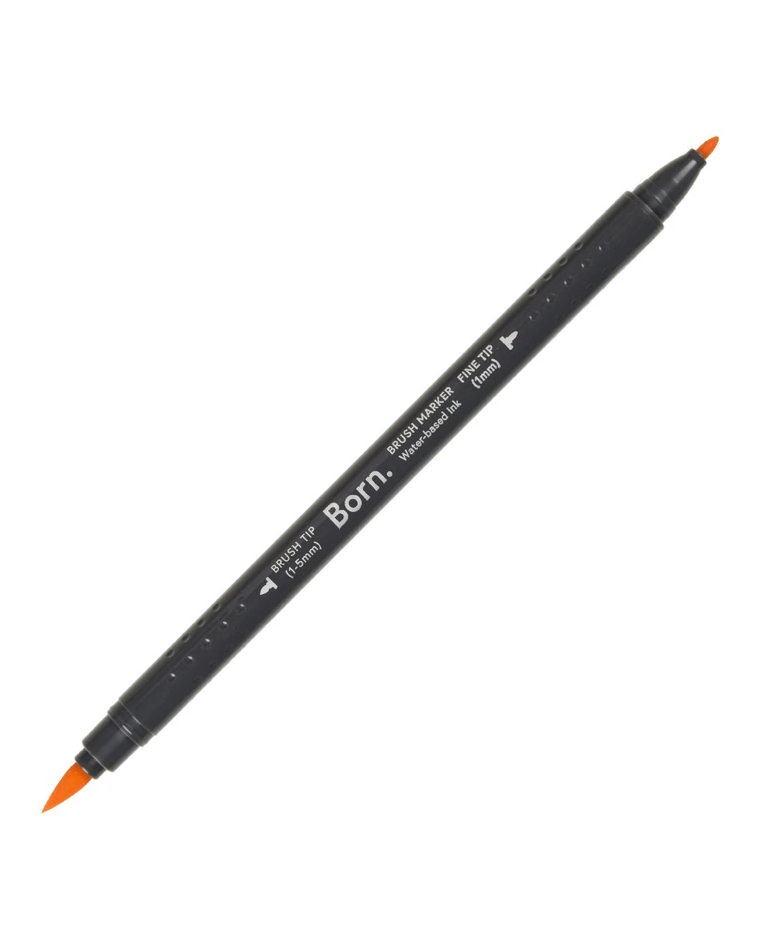 This Born Professional Dual-Tip Brush Marker features water-based ink and a triangle barrel for comfort and control. One side has a fine tip, while the other side has a brush tip, allowing you to create different strokes and effects.