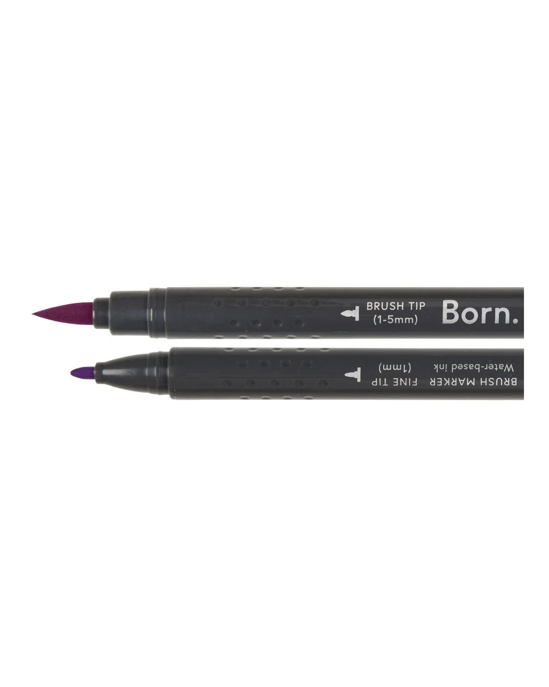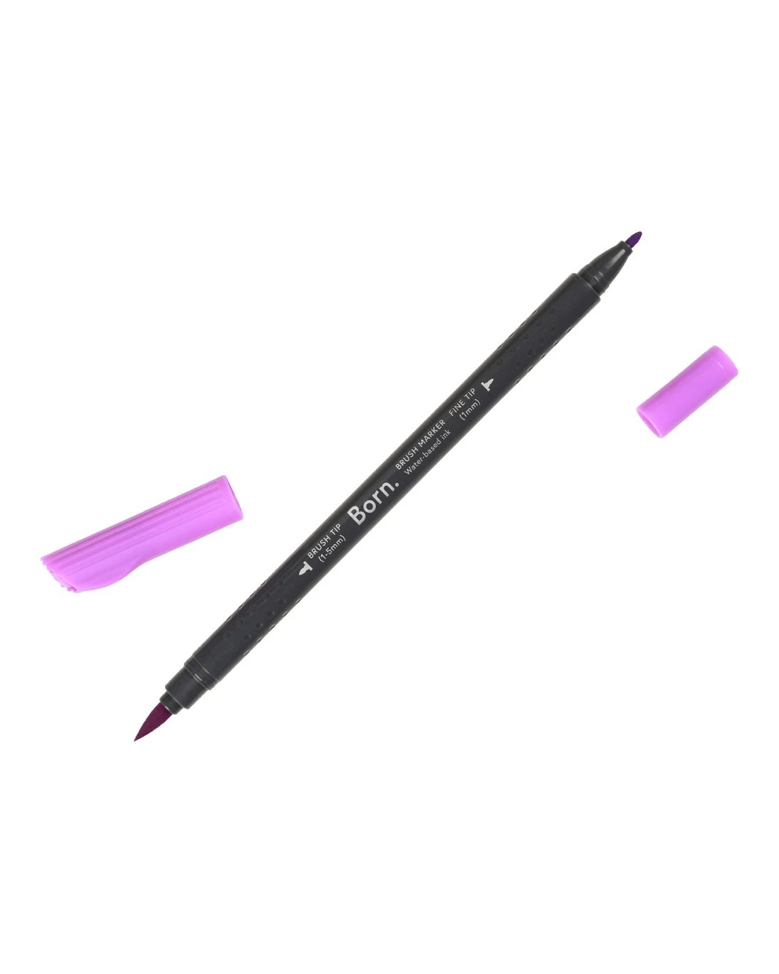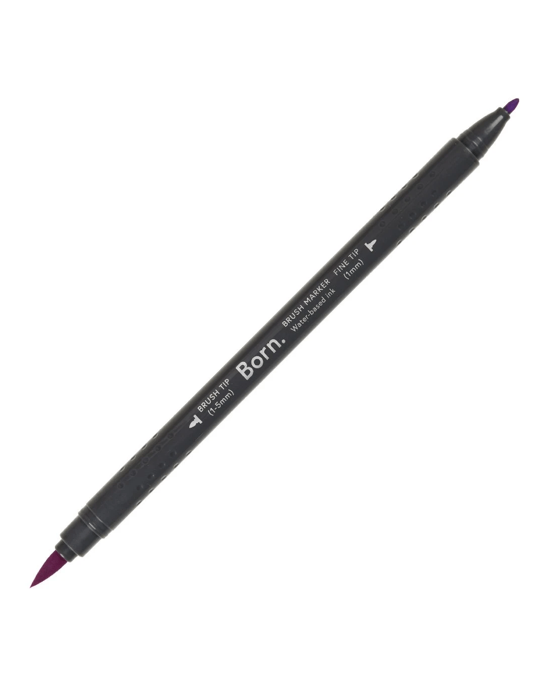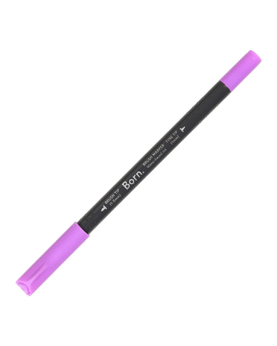 This Born Professional Dual-Tip Brush Marker features water-based ink and a triangle barrel for comfort and control. One side has a fine tip, while the other side has a brush tip, allowing you to create different strokes and effects.