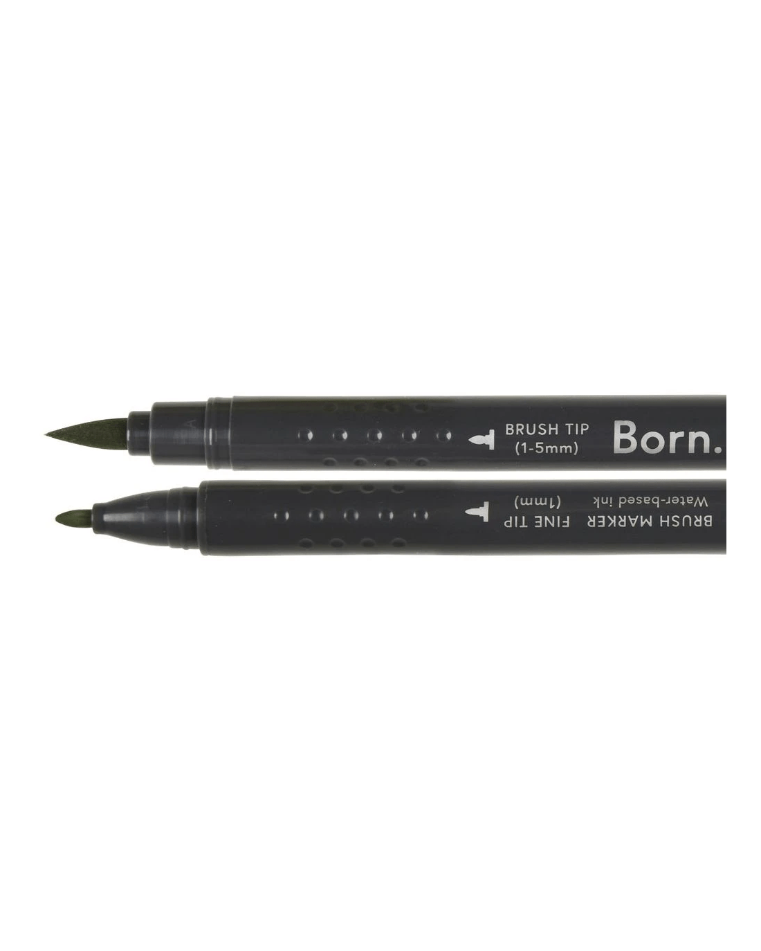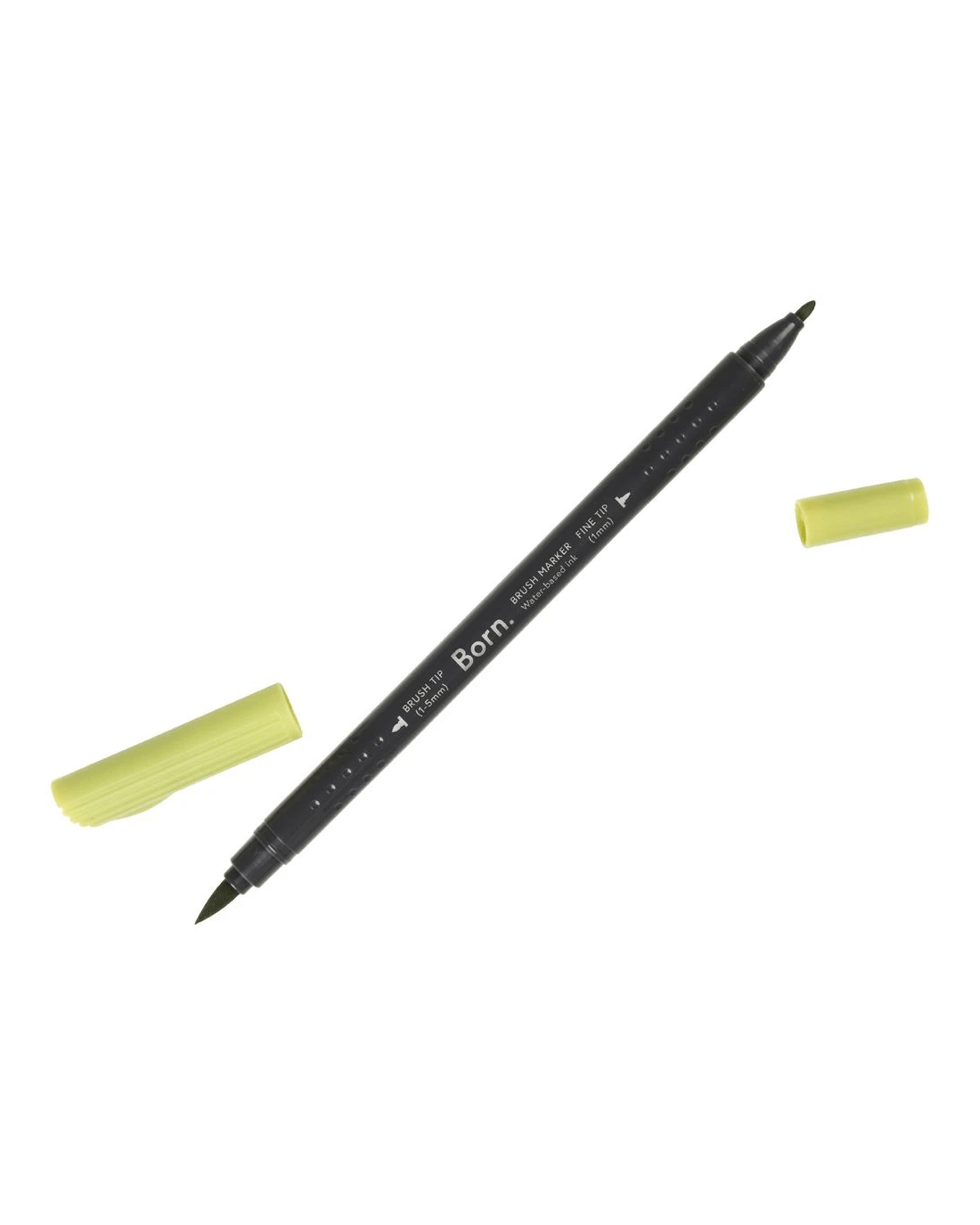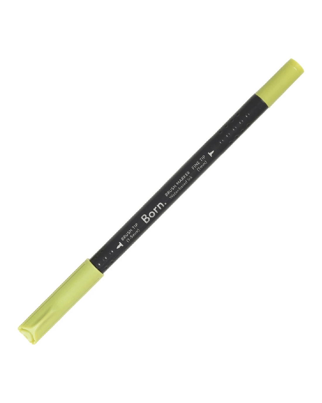 This Born Professional Dual-Tip Brush Marker features water-based ink and a triangle barrel for comfort and control. One side has a fine tip, while the other side has a brush tip, allowing you to create different strokes and effects.