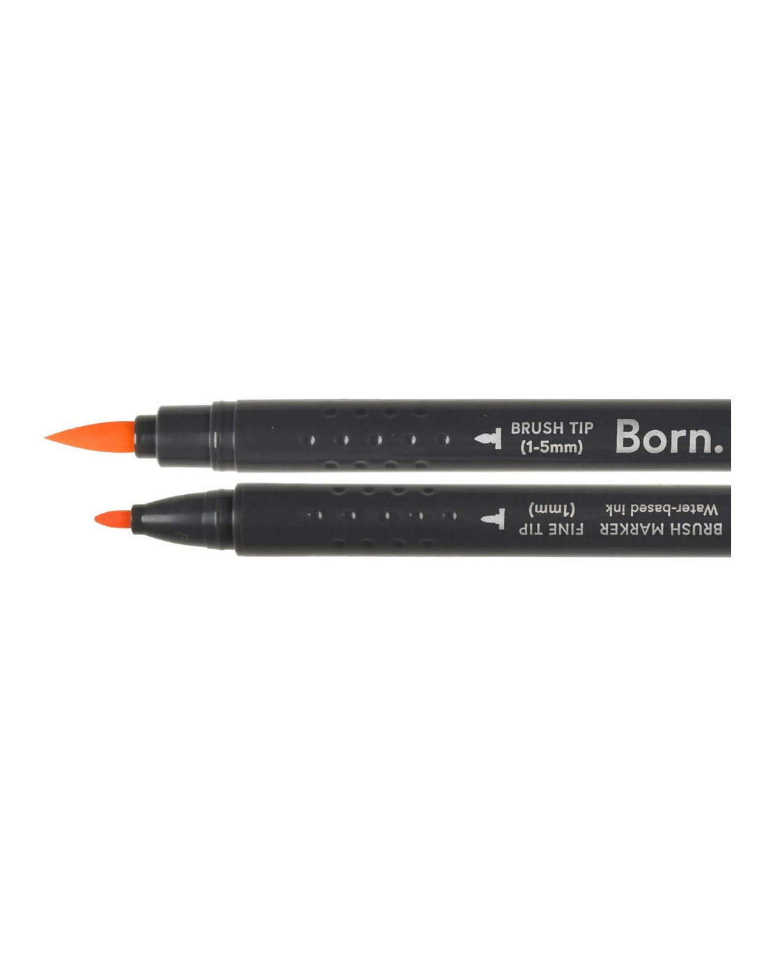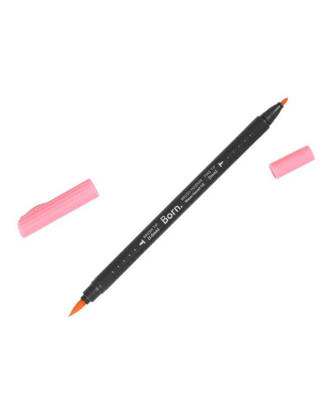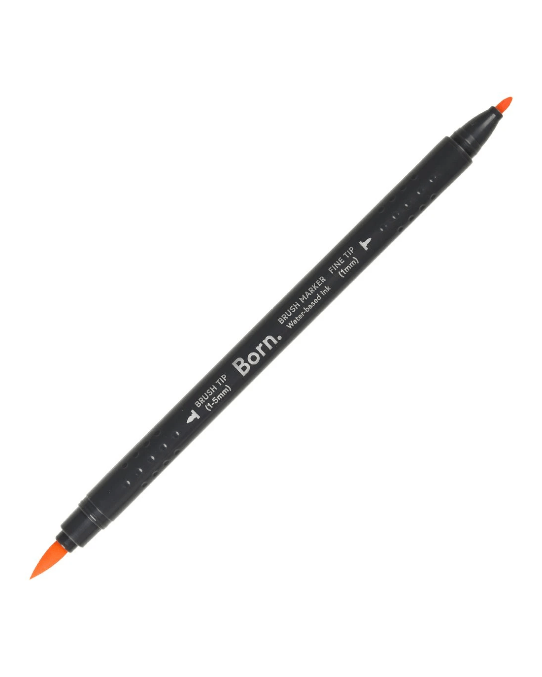 This Born Professional Dual-Tip Brush Marker features water-based ink and a triangle barrel for comfort and control. One side has a fine tip, while the other side has a brush tip, allowing you to create different strokes and effects.