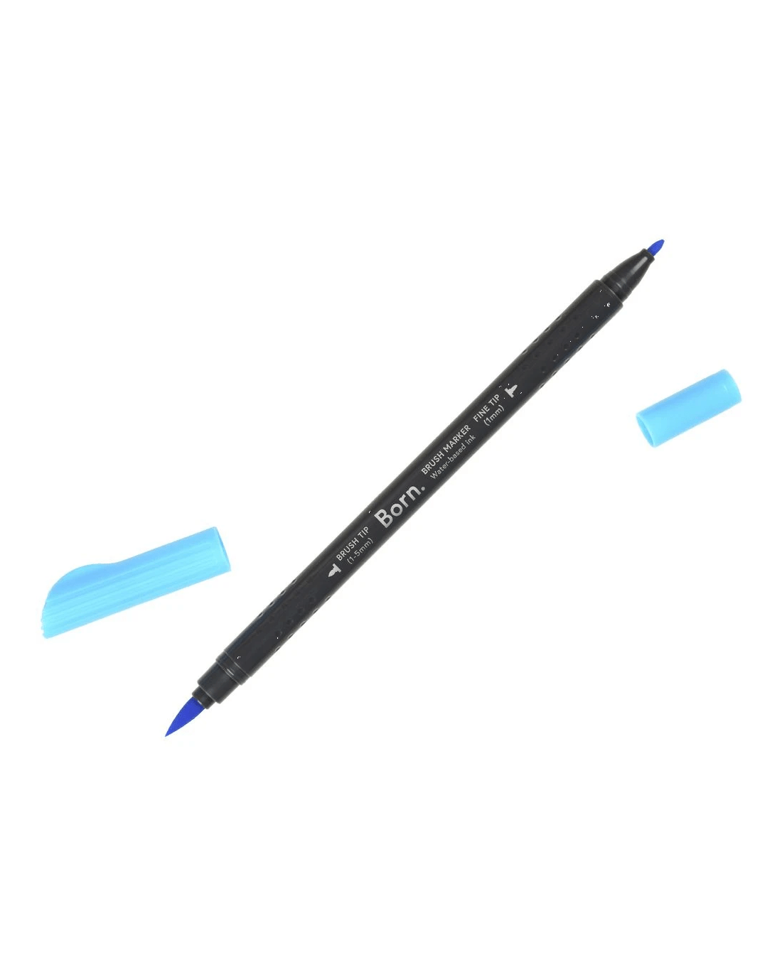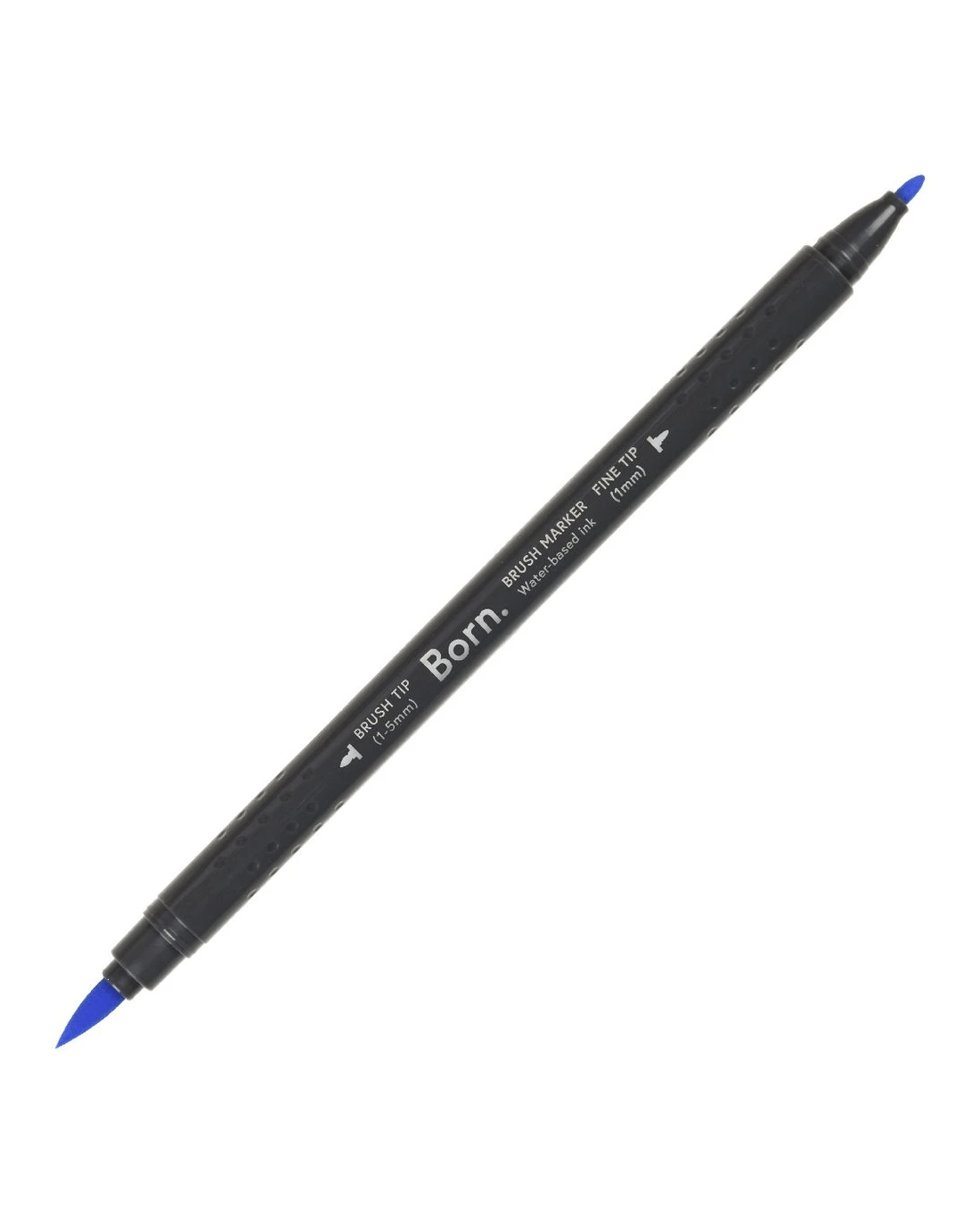 This Born Professional Dual-Tip Brush Marker features water-based ink and a triangle barrel for comfort and control. One side has a fine tip, while the other side has a brush tip, allowing you to create different strokes and effects.