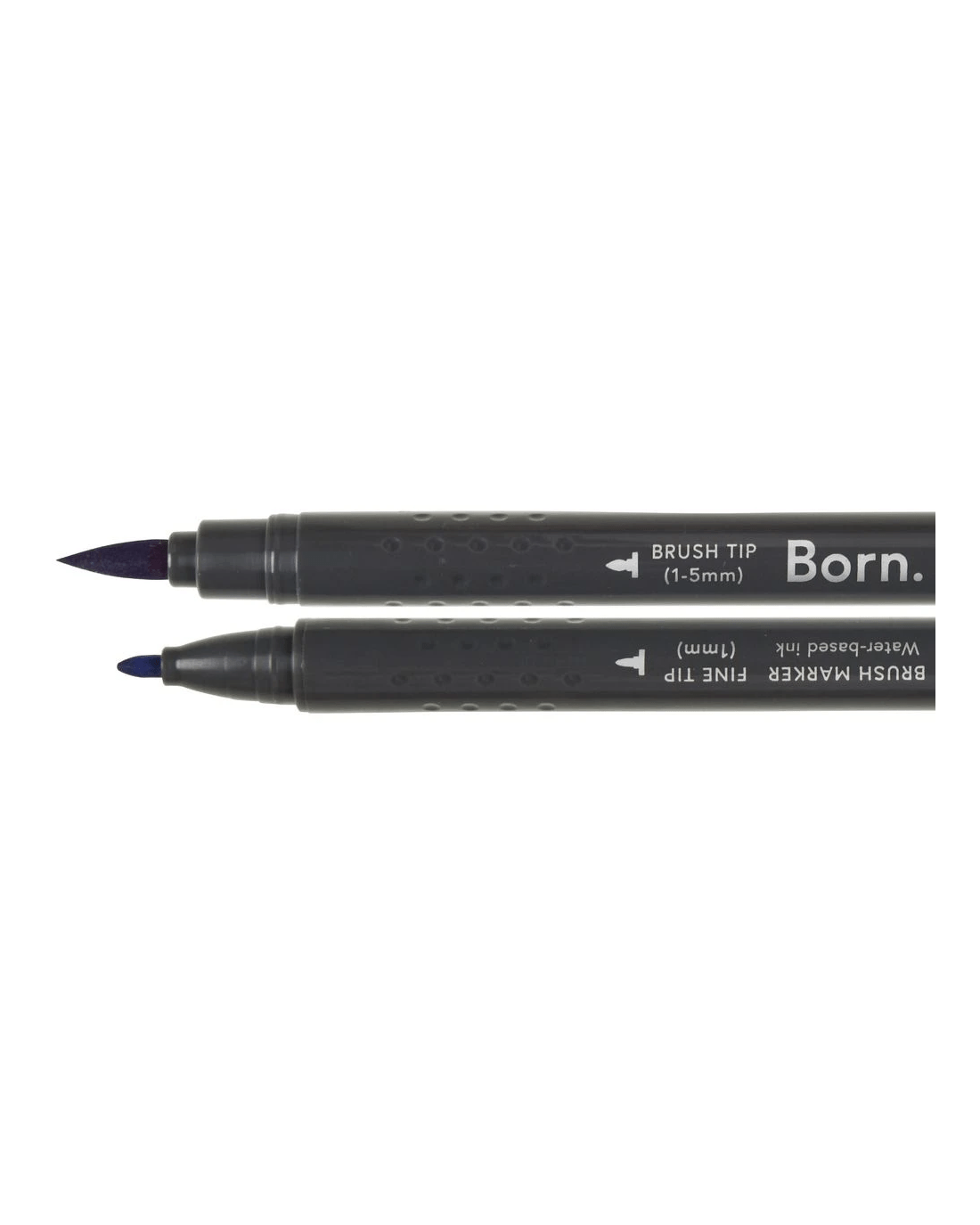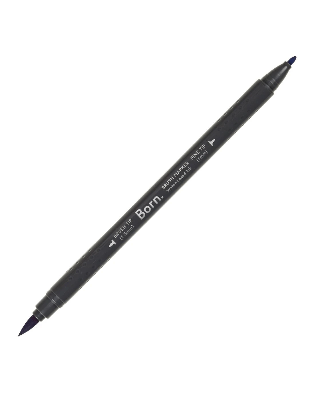 This Born Professional Dual-Tip Brush Marker features water-based ink and a triangle barrel for comfort and control. One side has a fine tip, while the other side has a brush tip, allowing you to create different strokes and effects.
