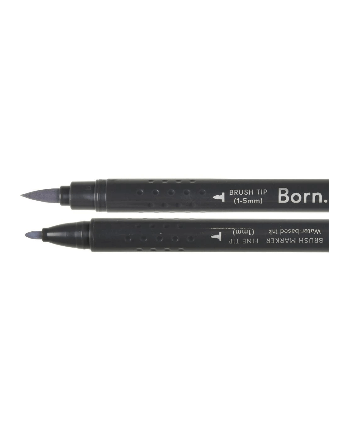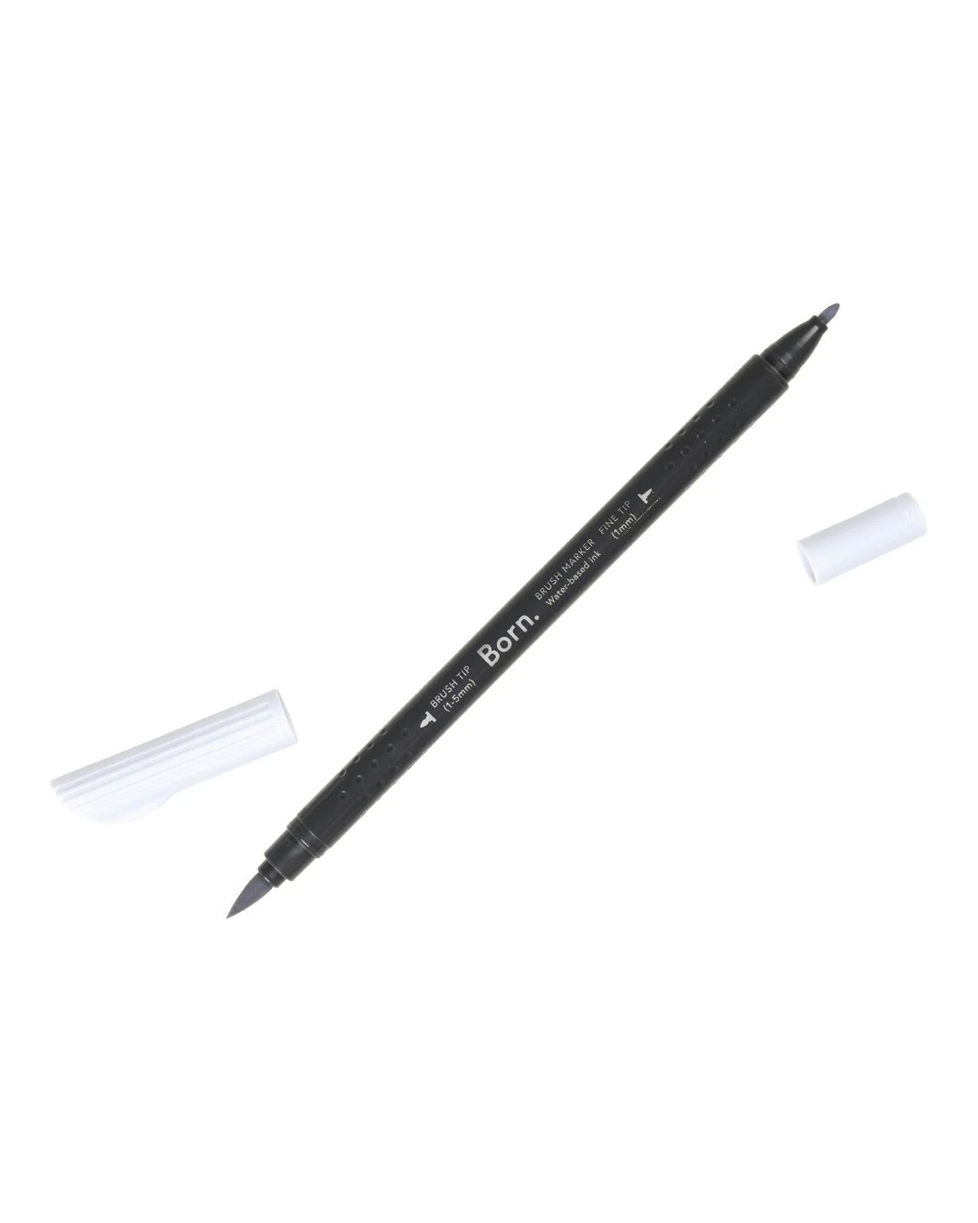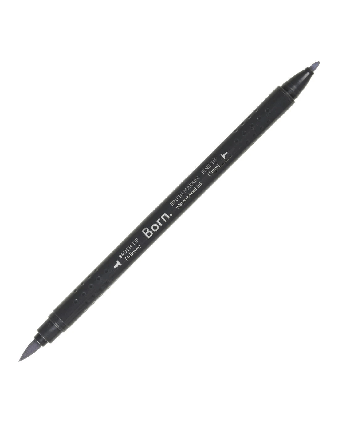 This Born Professional Dual-Tip Brush Marker features water-based ink and a triangle barrel for comfort and control. One side has a fine tip, while the other side has a brush tip, allowing you to create different strokes and effects.