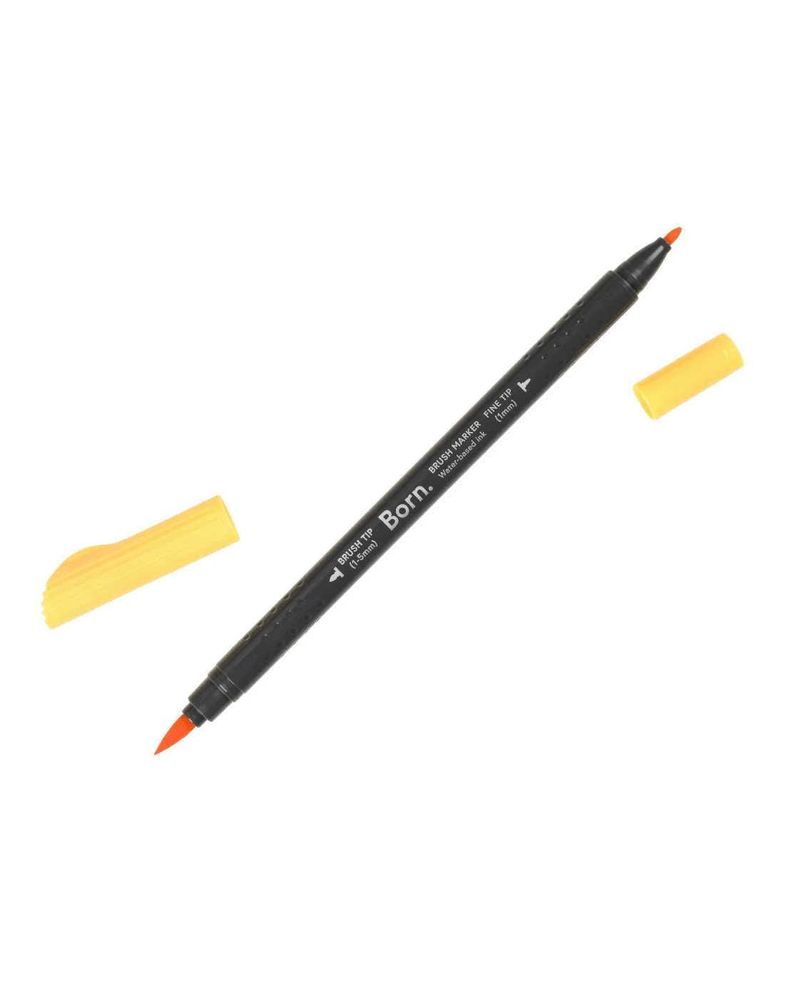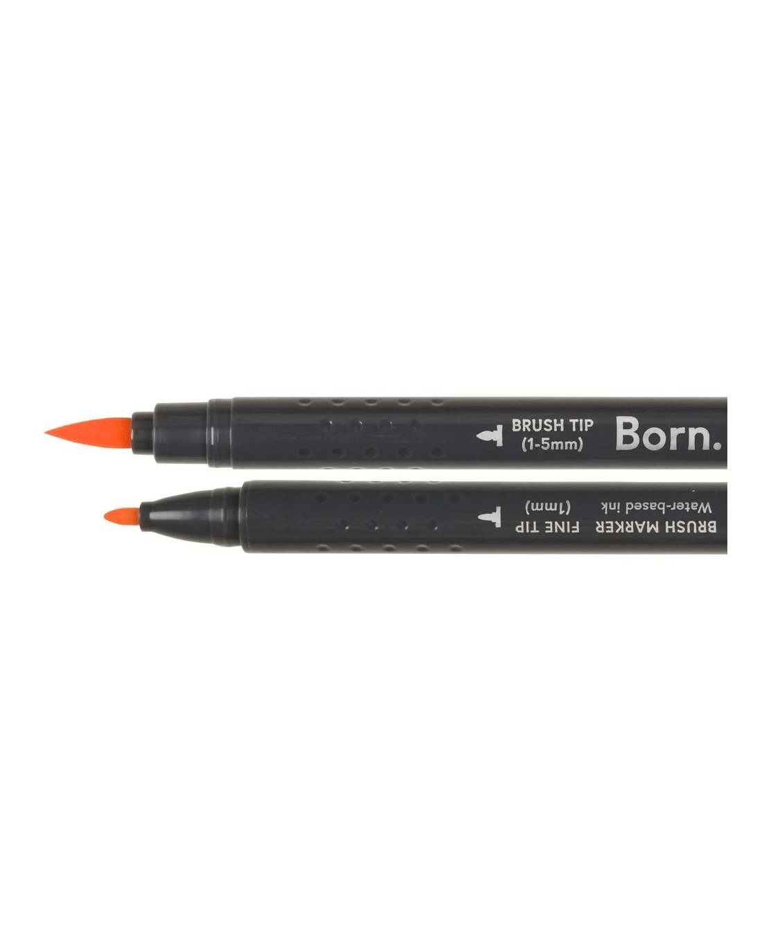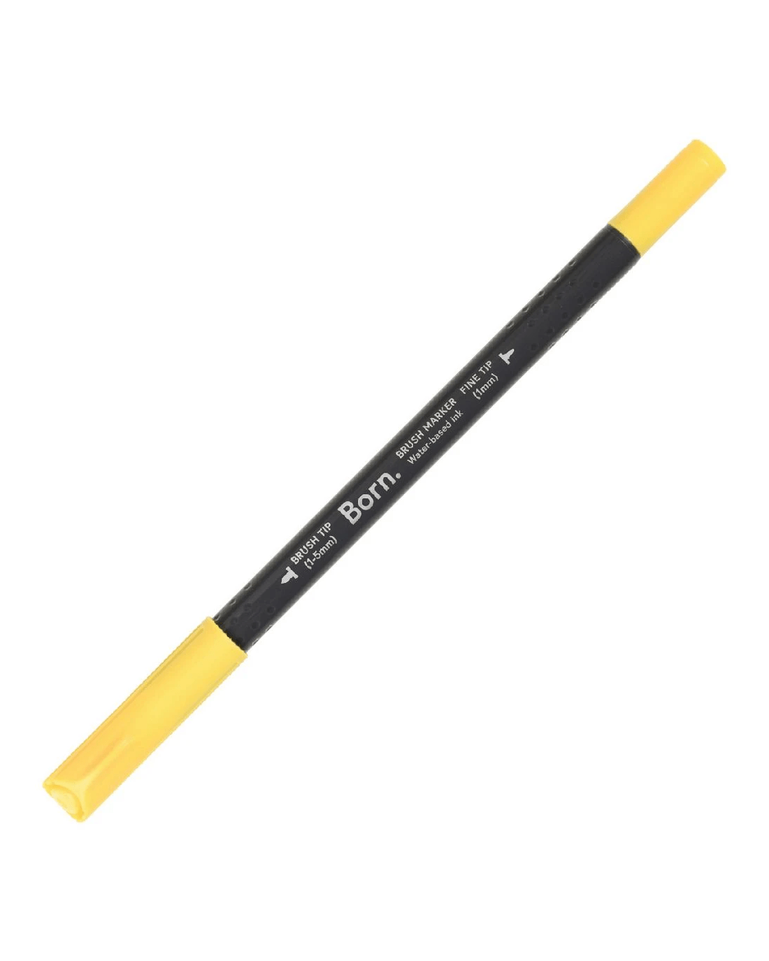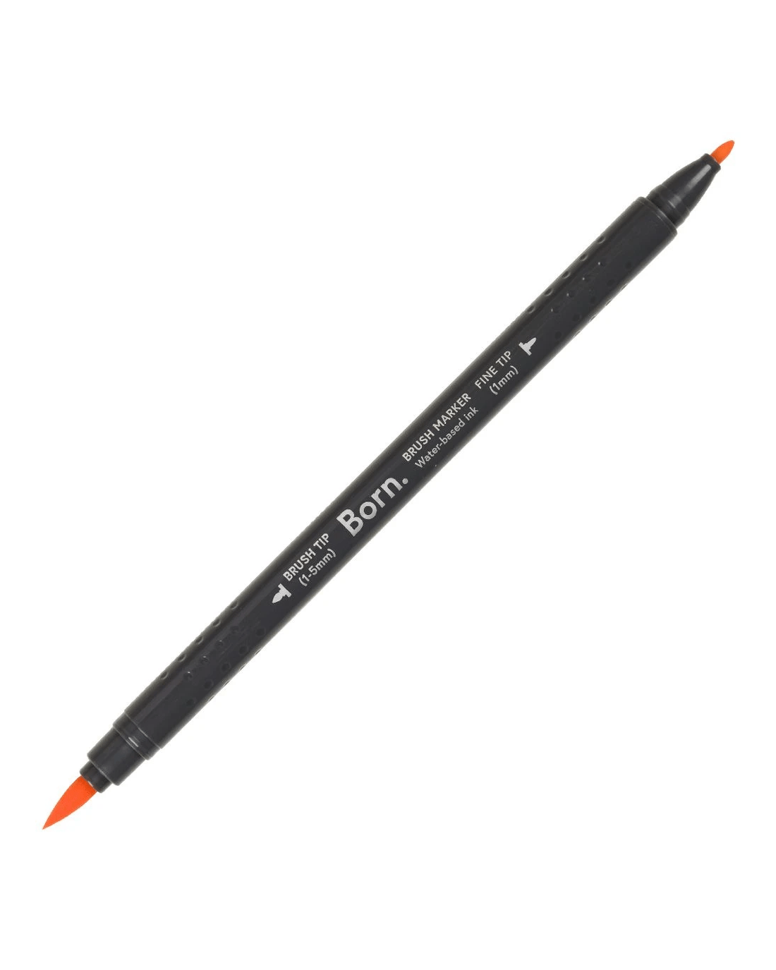 This Born Professional Dual-Tip Brush Marker features water-based ink and a triangle barrel for comfort and control. One side has a fine tip, while the other side has a brush tip, allowing you to create different strokes and effects.