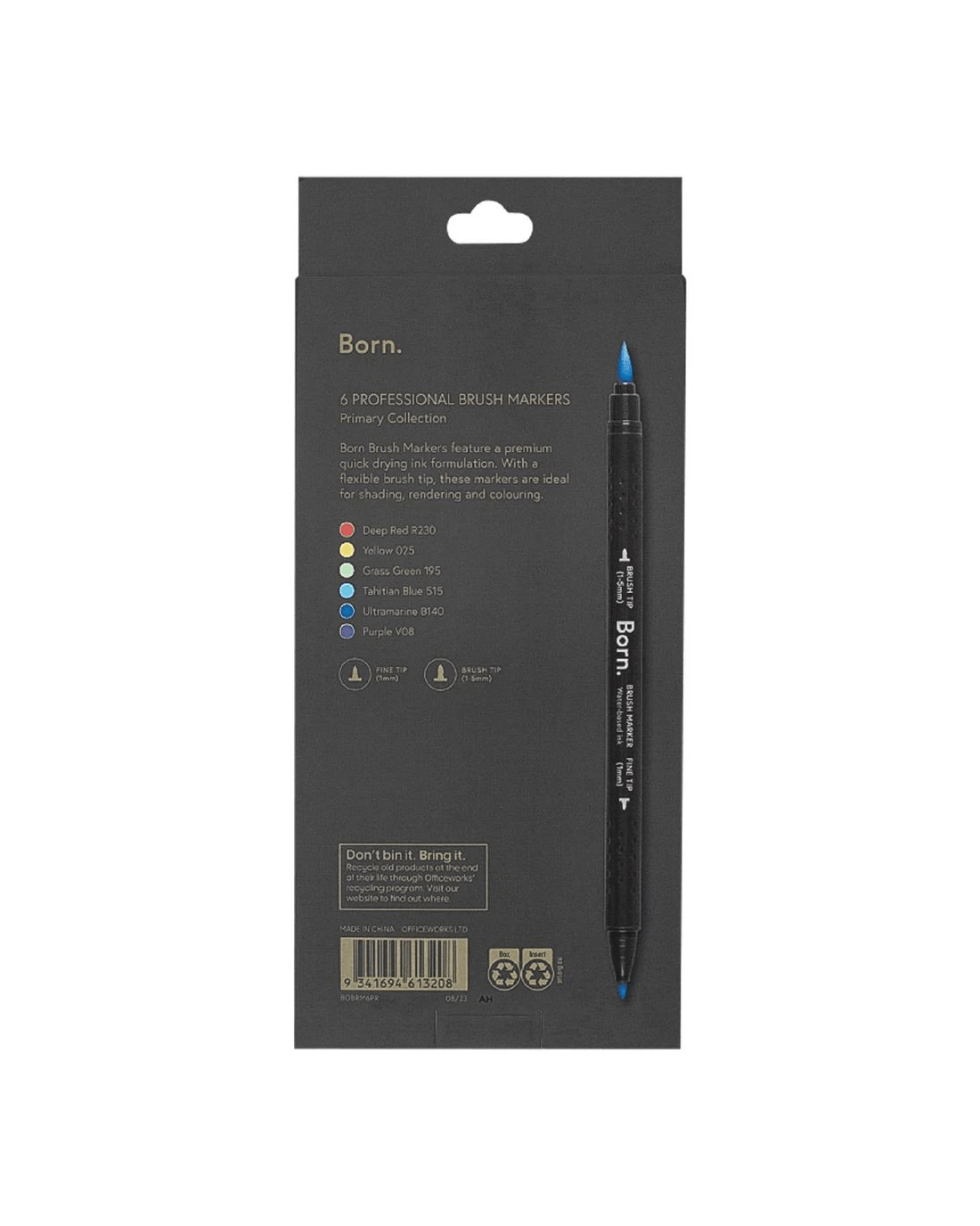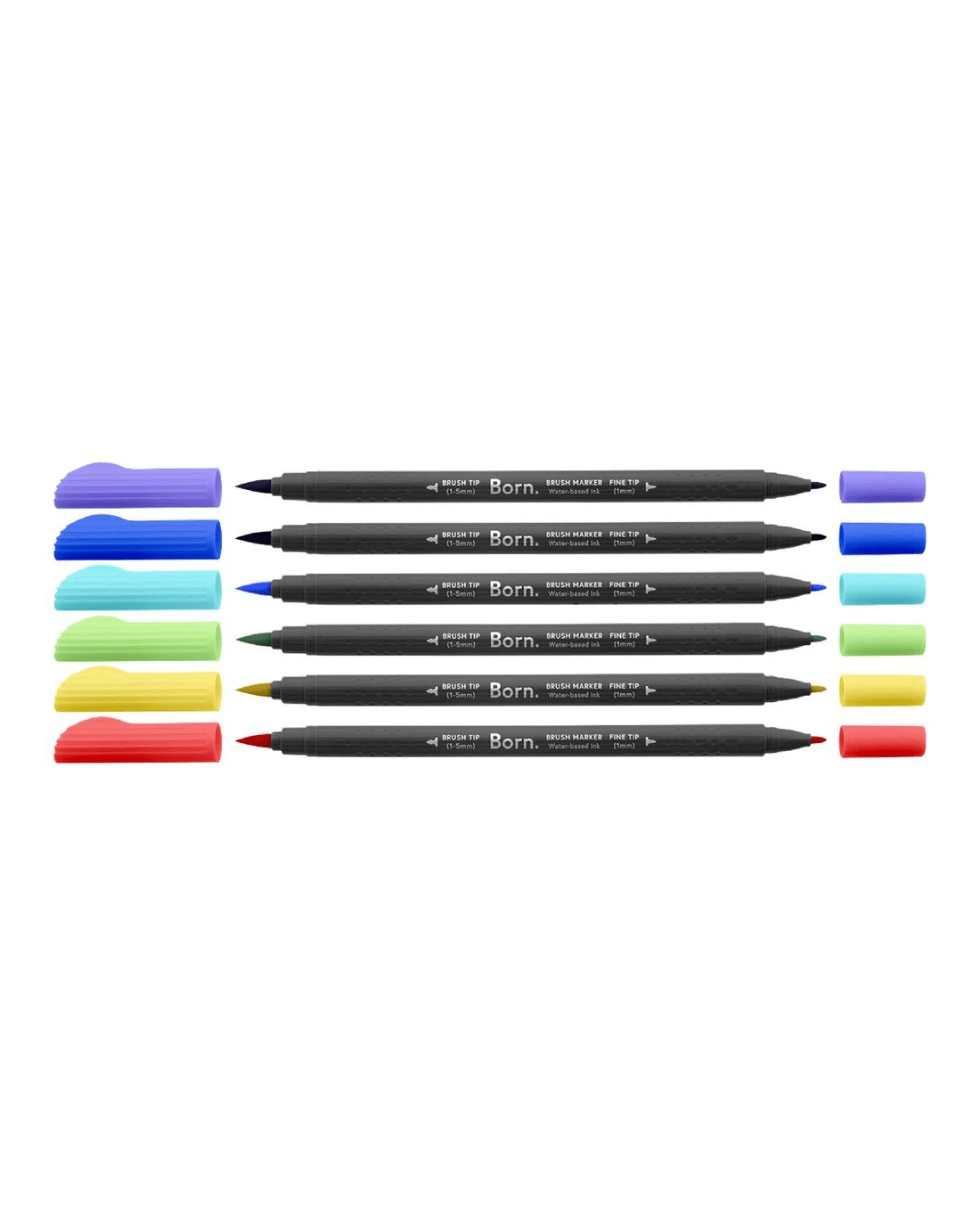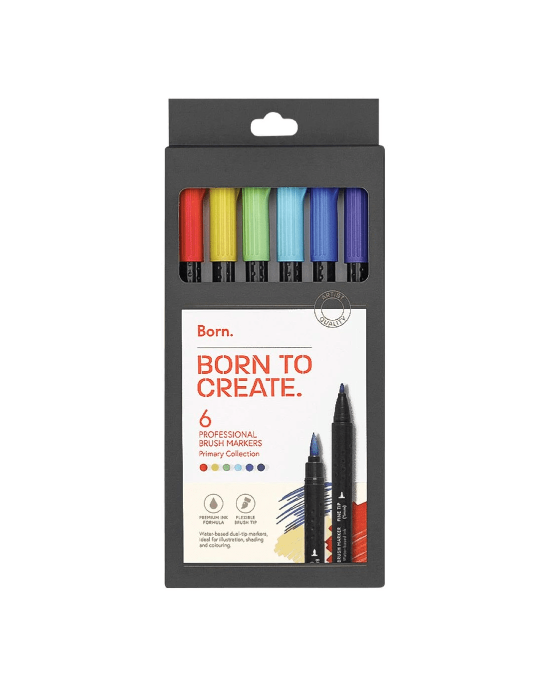 Born Professional Brush Dual-Tip Markers Primary 6 Pack