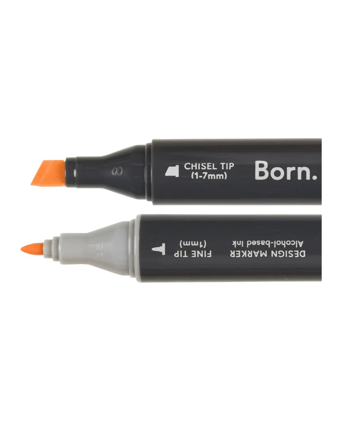 This Born Professional Dual-Tip Artist Marker features alcohol-based ink that's great for blending and is quick-drying. One side has a fine tip, while the other side has a chisel tip, making it perfect for illustrating, sketching, cartooning, and manga drawing.