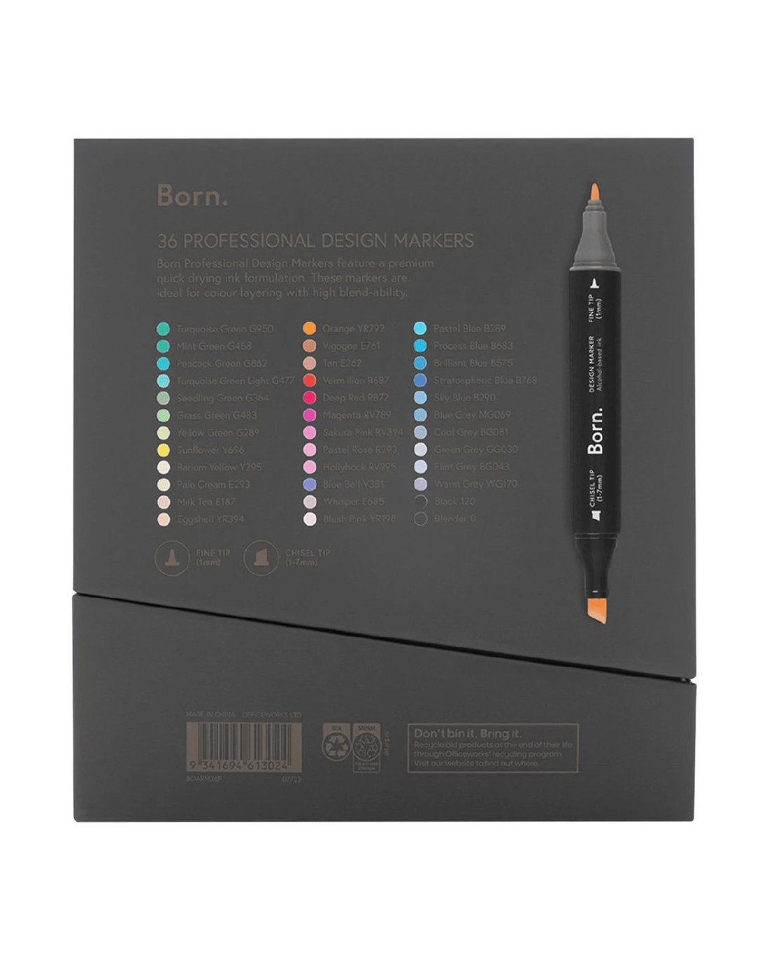 Sold by OfficeworksBorn Professional Dual-Tip Artist Markers Assorted 36 Pack