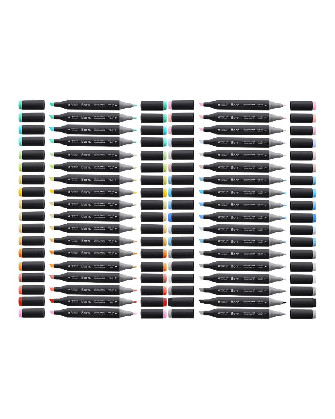 These Born Professional Dual-Tip Artist Markers feature alcohol-based ink that's great for blending and is quick-drying. One side has a fine tip, while the other side has a chisel tip, making it perfect for illustrating, sketching, cartooning, and manga drawing.