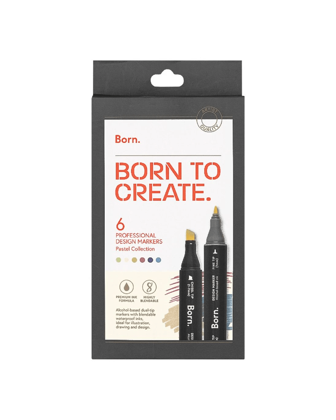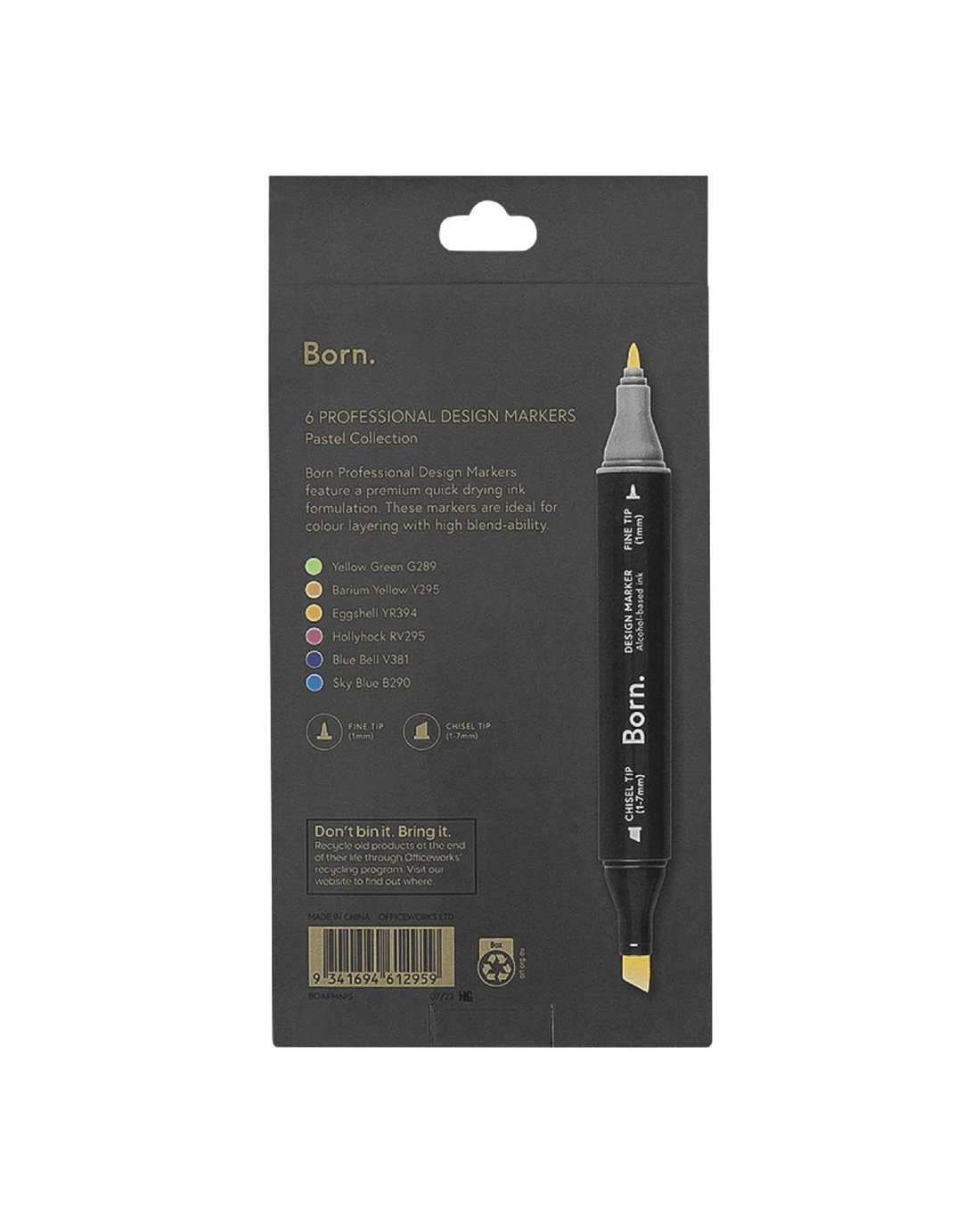 Sold by OfficeworksBorn Professional Dual-Tip Artist Markers Pastels 6 Pack