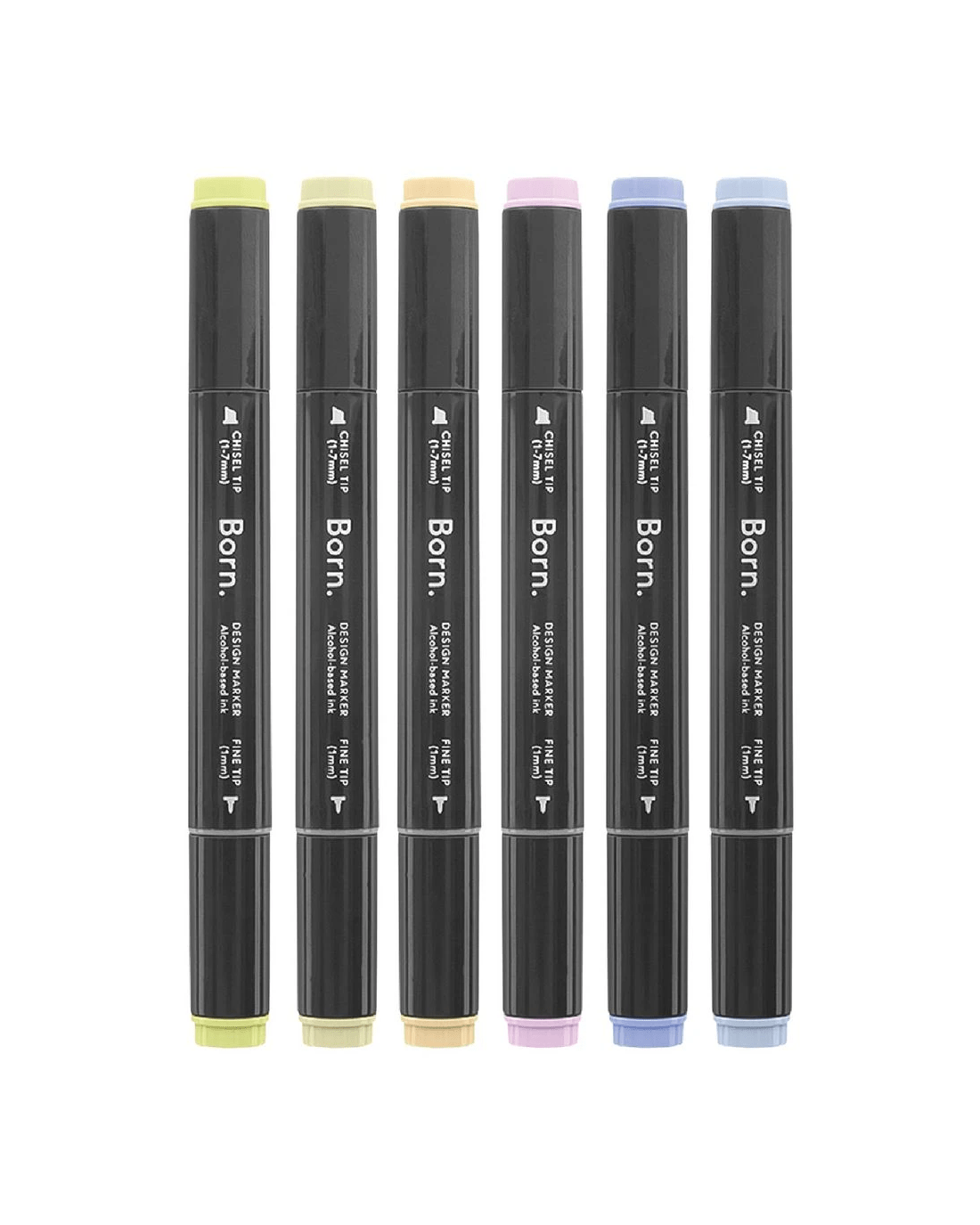 These Born Professional Dual-Tip Artist Markers feature alcohol-based ink that's great for blending and is quick-drying. One side has a fine tip, while the other side has a chisel tip, making it perfect for illustrating, sketching, cartooning, and manga drawing.