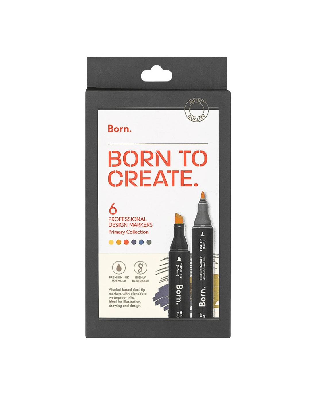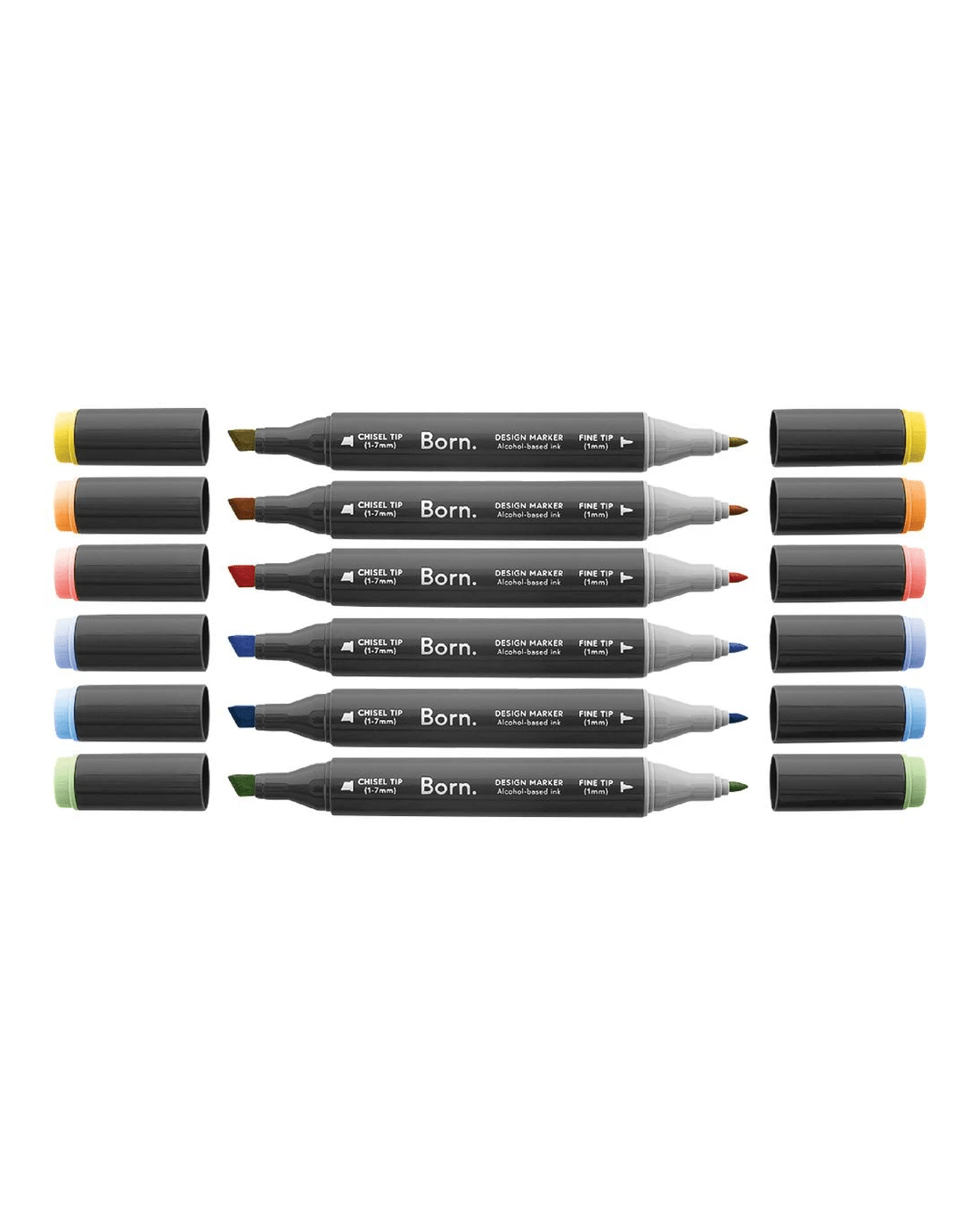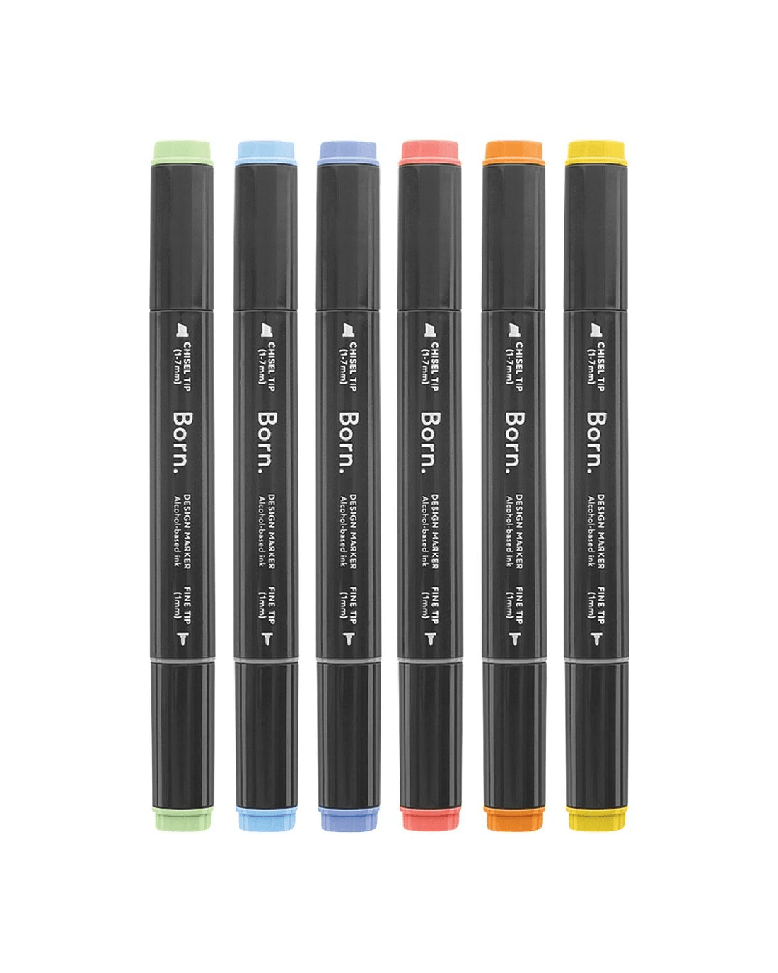 These Born Professional Dual-Tip Artist Markers feature alcohol-based ink that's great for blending and is quick-drying. One side has a fine tip, while the other side has a chisel tip, making it perfect for illustrating, sketching, cartooning, and manga drawing.