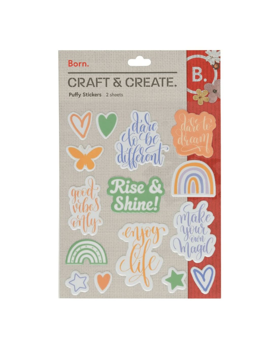 These Born Puffy Word Stickers are great for elevating projects with a burst of positivity and style. Each set includes 2 sheets of delightful puffy stickers that feature an array of inspiration quotes and charming icons.
