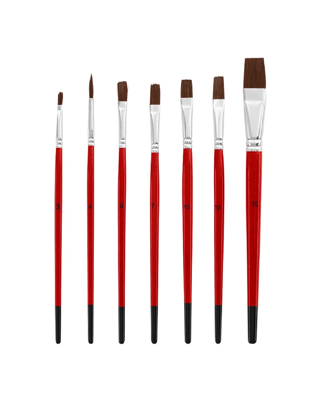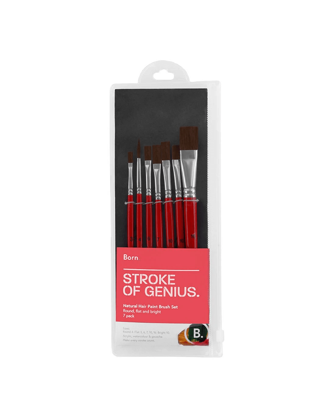 Sold by OfficeworksBorn Round Flat Paintbrush Set Natural Hair 7 Pack