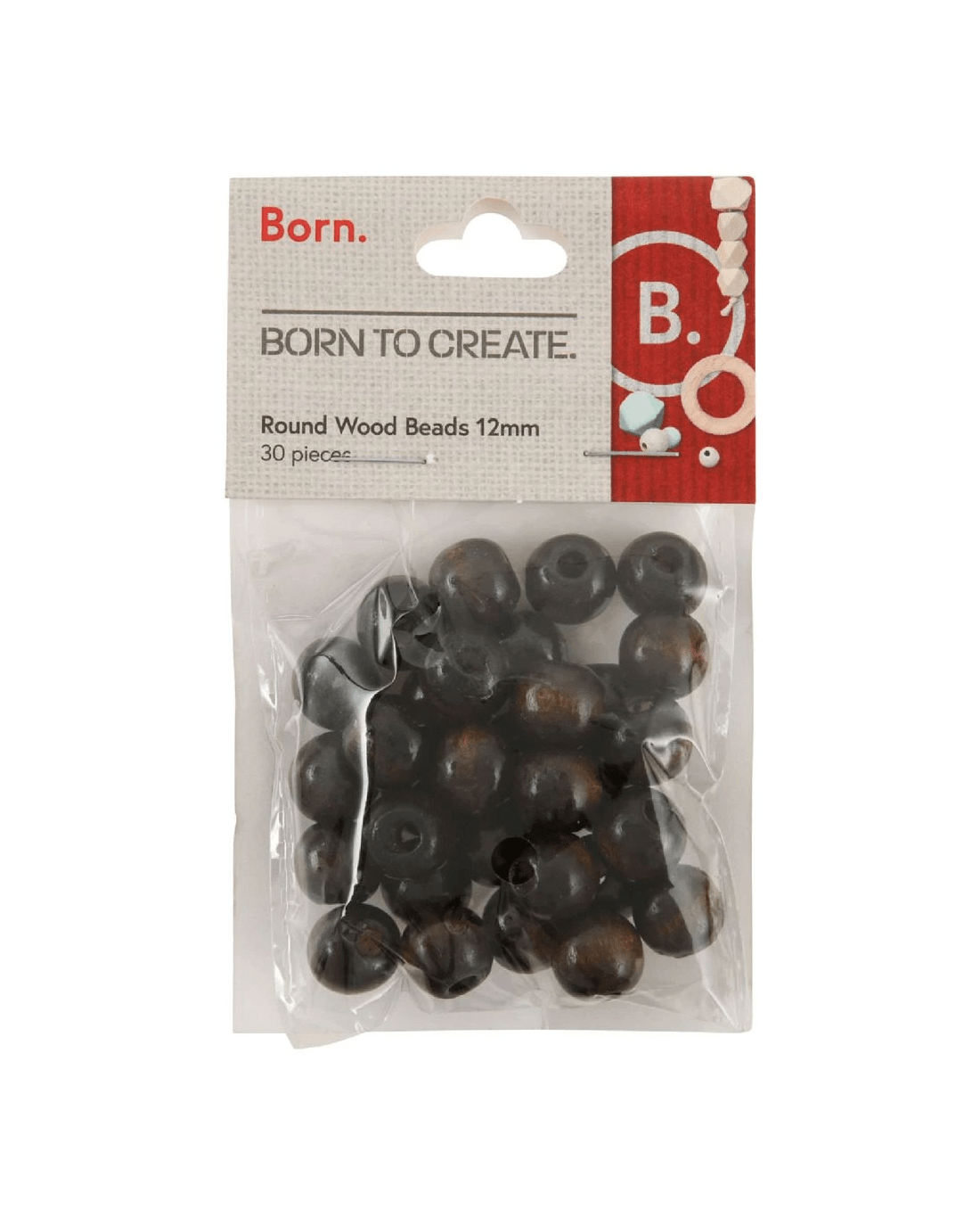 Sold by OfficeworksBorn Round Wooden Beads 12mm Dark Brown 30 Pieces