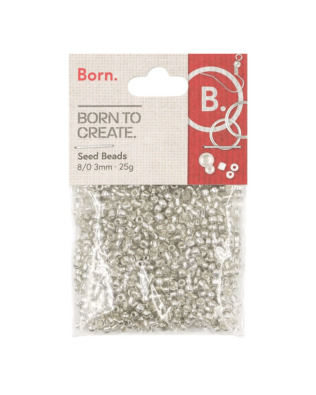 Born Seed Beads 8/0 3mm 25g Silver