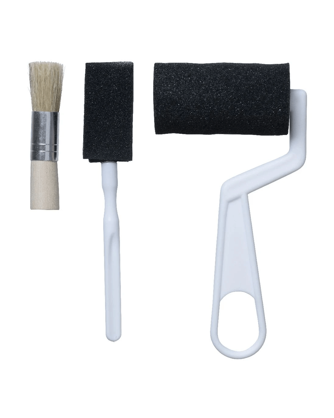 • This set comes with 1 x foam paint roller, 1 x foam brush, and 1 x stippling brush.