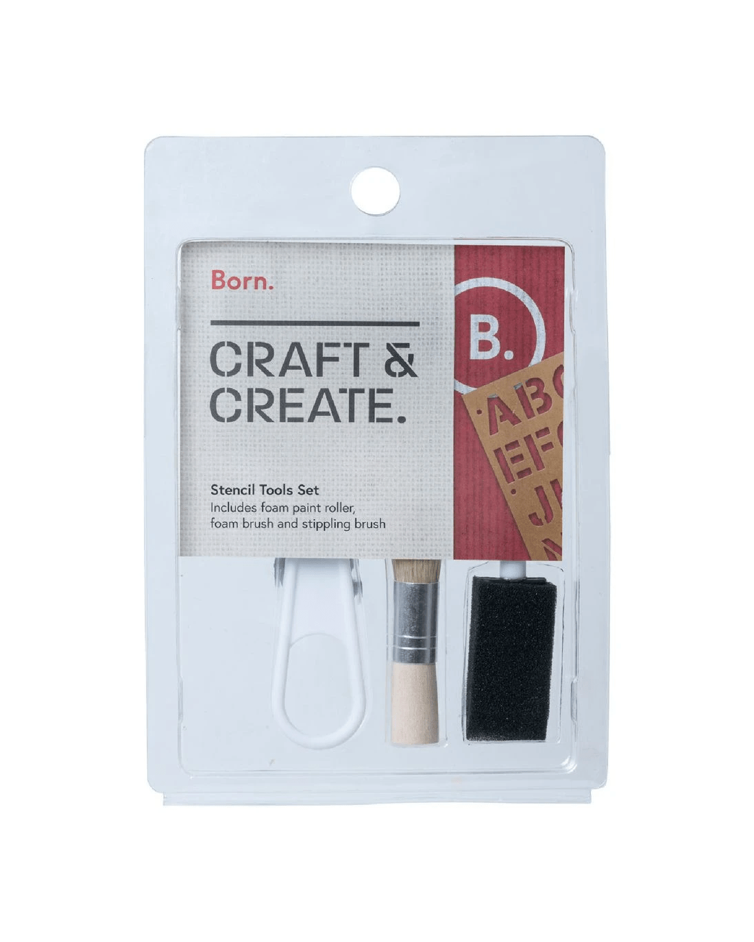 This Born Stencil Tools Pack has all the basic accessories you need to make your project pop. It comes with a foam paint roller, a foam brush, and a stippling brush, all of which are great to use with stencils on canvases, furniture, and walls.