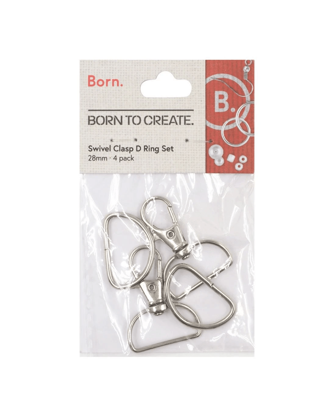 Sold by OfficeworksBorn Swivel Clasp D Ring Set Silver 28mm 4 Pack