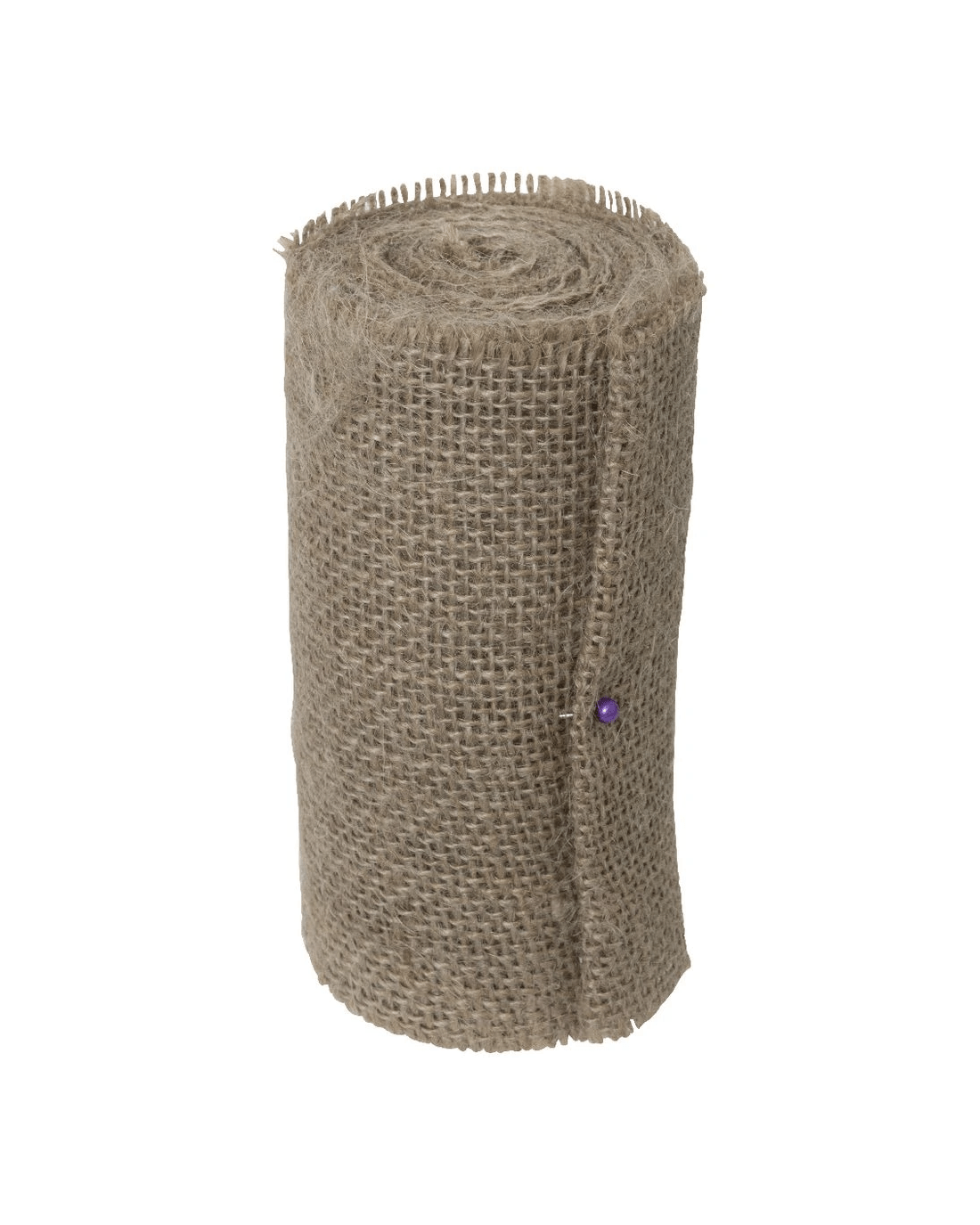 • This ribbon is made from burlap and provides a rustic aesthetic.