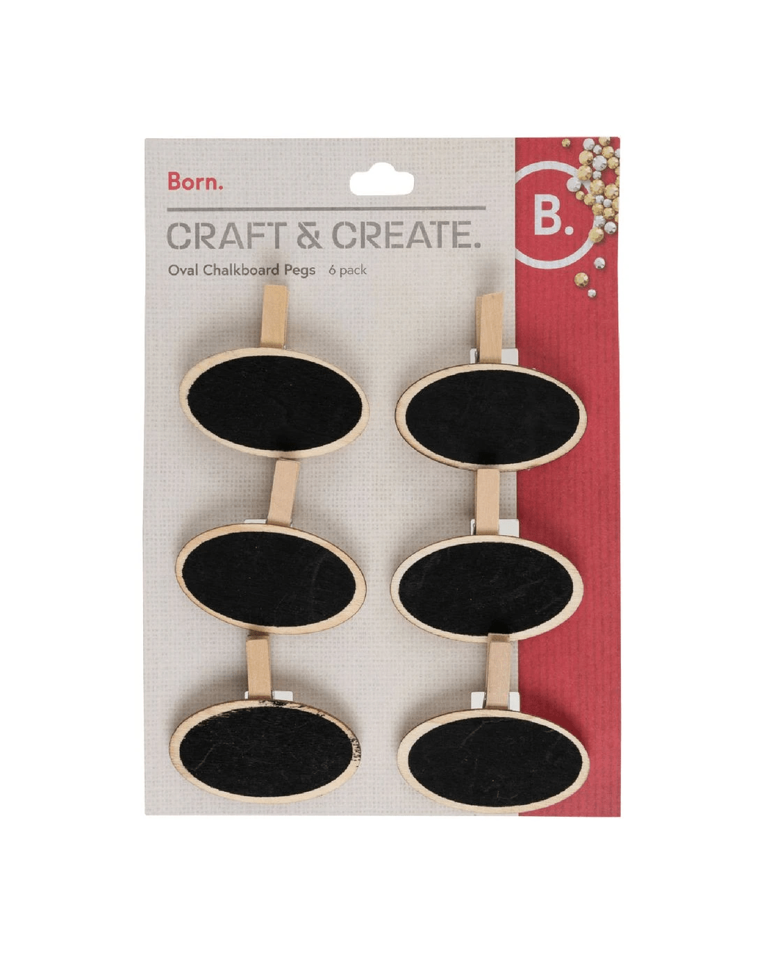 These Born Wooden Pegs with Labels are perfect for adding a personalised touch to your invitations, labels, cards, gifts, and more. They have an oval shape and come in a pack of 6.