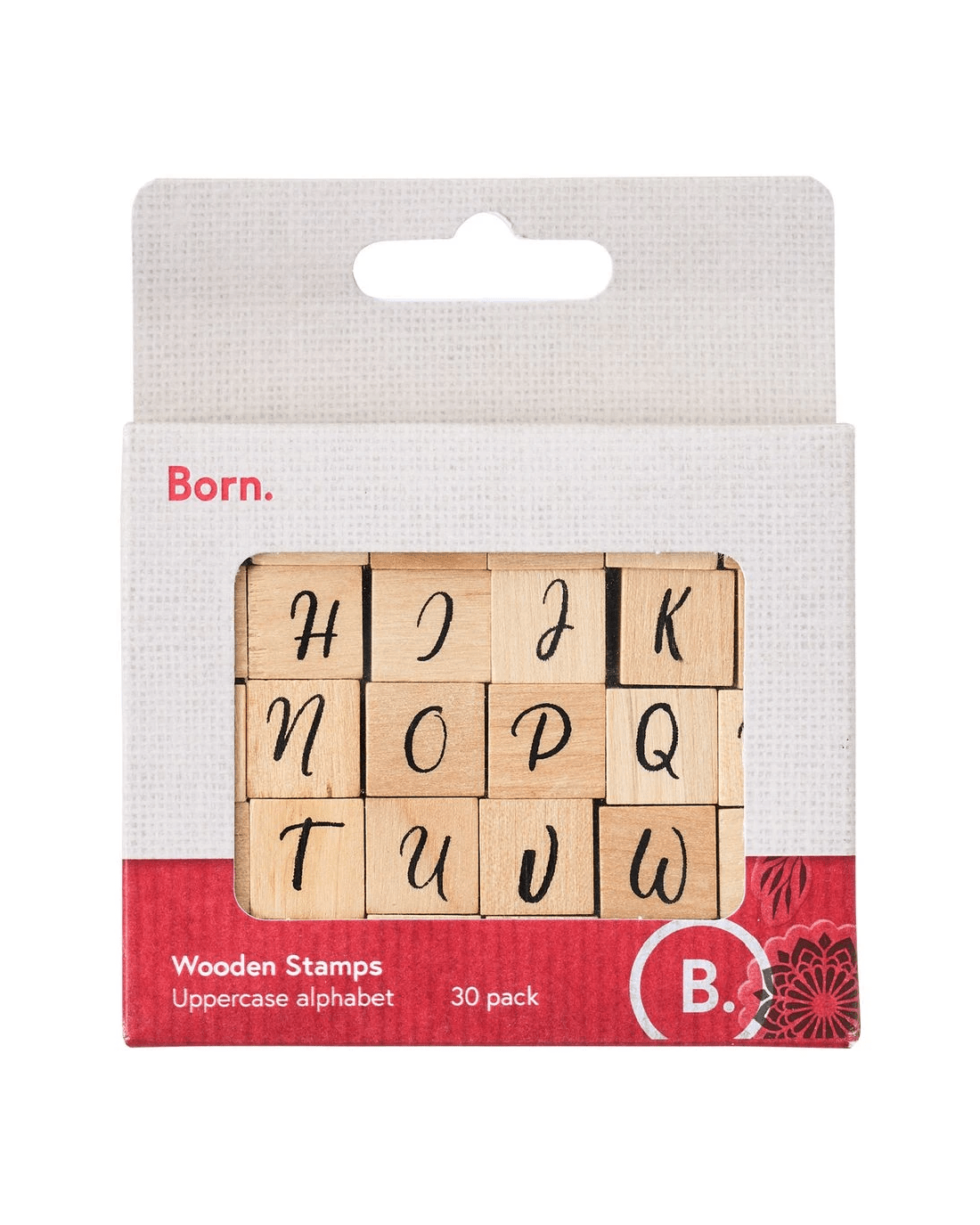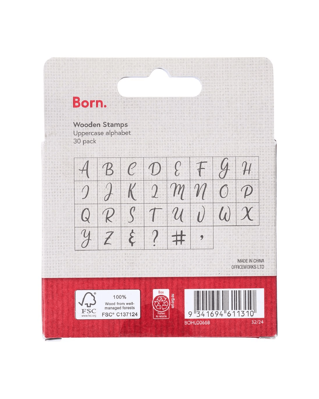Sold by OfficeworksBorn Wooden Stamp Alphabet Upper Script 30 Pack.