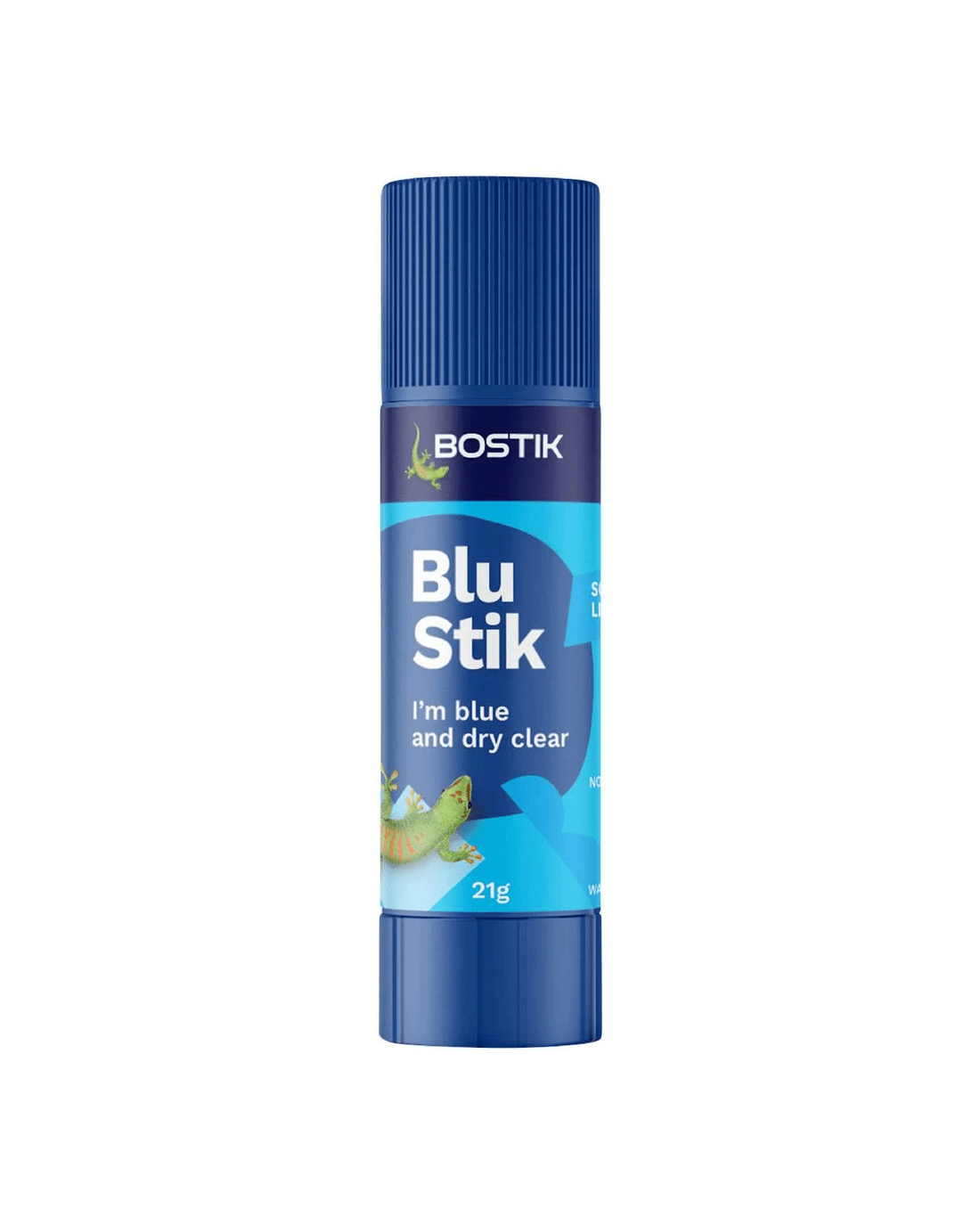 The Bostik Blu Stik is a smooth, solid, general purpose adhesive glue stick. Perfect for scrapbooks, cutting and pasting, school projects and paper craft, the Blu Stik is ideal for home, office or school use.