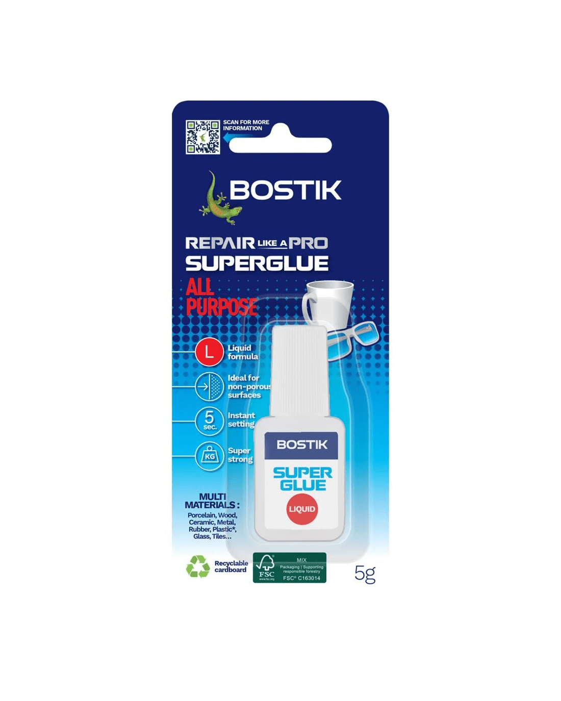 This Bostik Super Glue Liquid is a multipurpose super glue suitable for bonding non-porous material in seconds. The 5g bottle features a precision brush applicator, making it ideal for both detailed and general use. Plus, it dries clear and is solvent free.