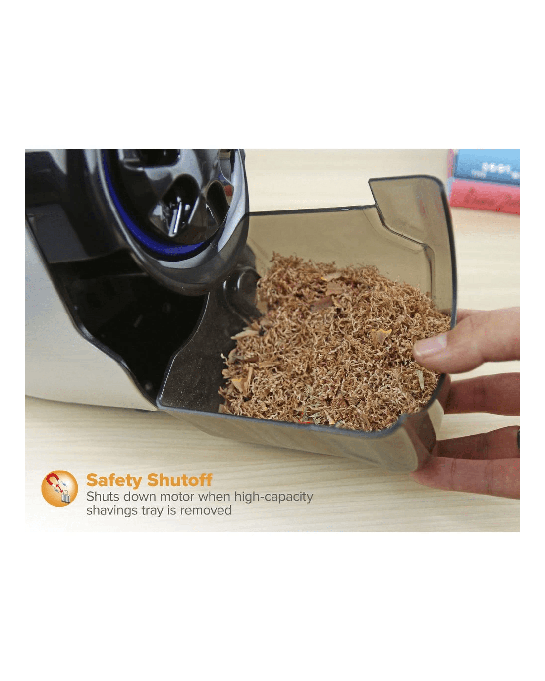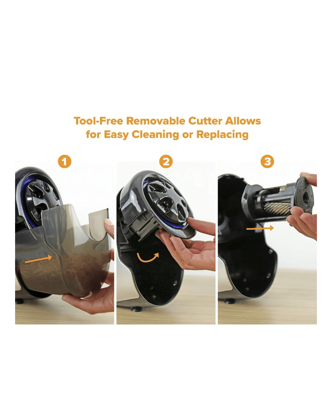 - It comes with a removable inbuilt canister so you don't have to sharpen over a bin.